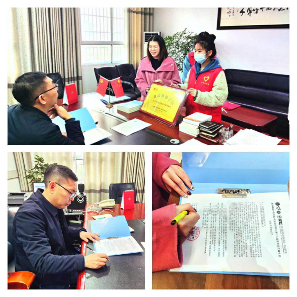 签约仪式上,赵中德校长和肖琳老师认真阅读合作协议书,就未来的合作内容及方式进行了深入的探讨。肖琳老师表示,重庆移通学院在志愿服务板块始终坚持“志愿服务本土化”理念,做得比较规范,开展的活动都会以对方的实际需求为主,严格遵守我校志愿服务规章制度和当地疫情防控要求。赵校长表示同意,双方最终达成一致,签订了合作协议书。签约结束后,举行了授牌仪式,重庆移通学院淬炼·国际商学院大学生社会实践劳动教育基地正式建立。相信在双方的共同努力与支持下,能够让志愿服务注入更多的新形式、新活力,促进更多大学生加入到志愿服务的行列中来,让“奉献、友爱、互助、进步”的志愿服务精神在登瀛学校熠熠发光。