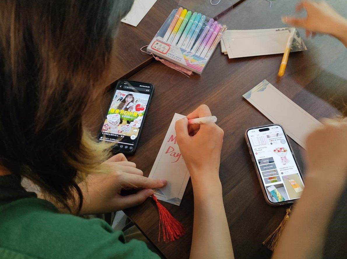 为了迎接母亲节的到来,我校“精英之声”语言社于5月8日下午3点至5点,在綦河书院东篱·故事茶馆精心策划了一场别具一格的“母爱无边”书签制作活动。本次活动旨在深化移通学子对母爱的理解和感悟,同时提供一个实践平台,让学生们亲手制作书签,以此表达对母亲的敬意和感激。