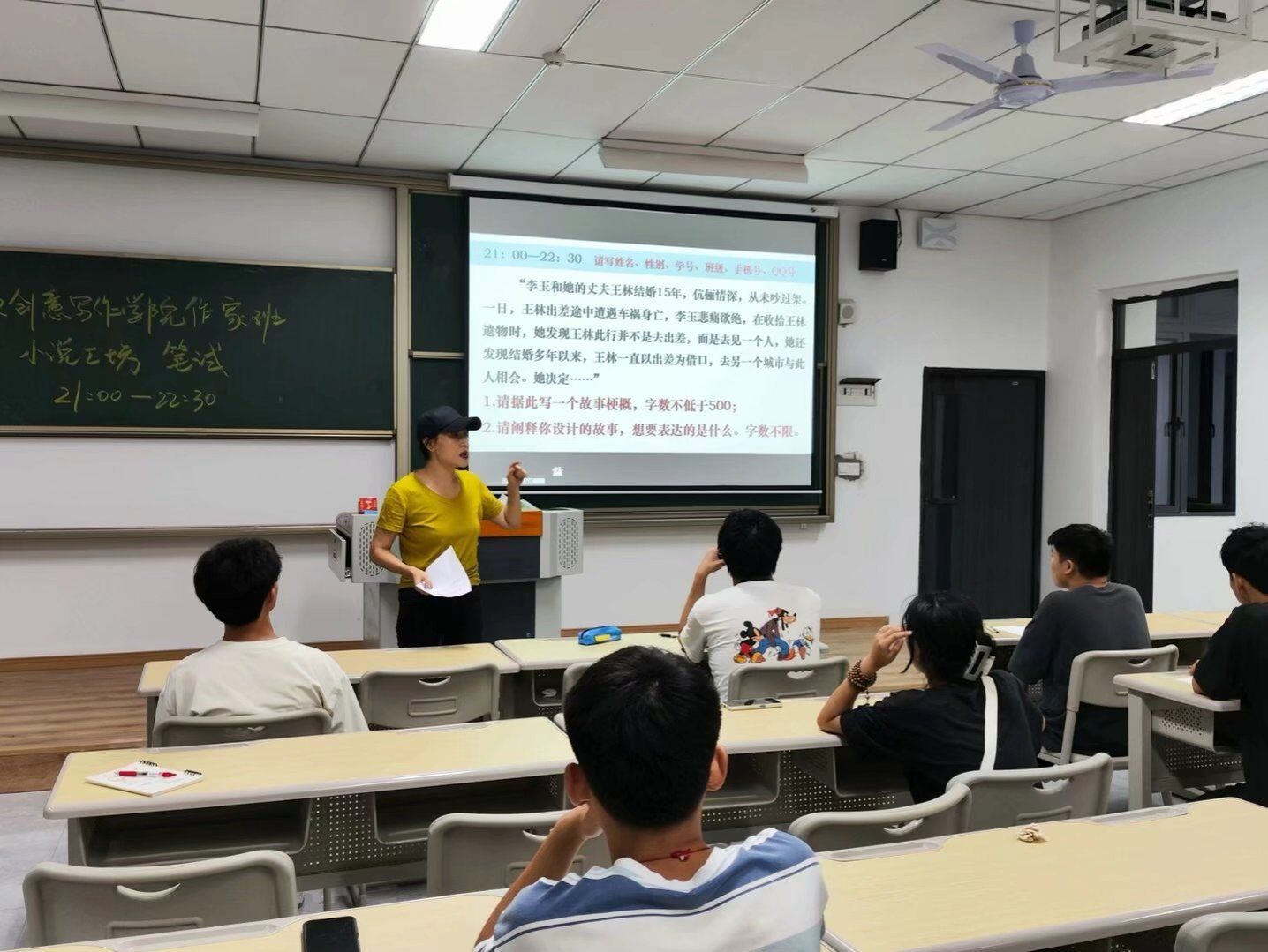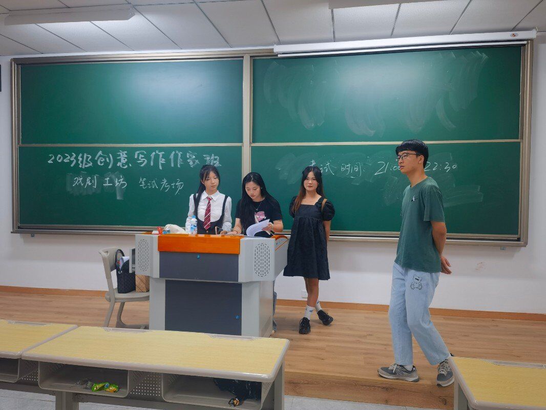 戏剧工坊杨南岳老师:13日晚作家班戏剧工坊笔试圆满结束。笔试过程中,学生助教引导有序,同学们答题相当认真。在笔试和面试后,我开始感觉到自己灵魂已嵌入戏剧工坊,在往后的教学授课过程中,也会因为这一场笔试带给我的沉思去爱护每一名学生。我和王恒绩老师有能力有信心将这20名学子带出成绩。