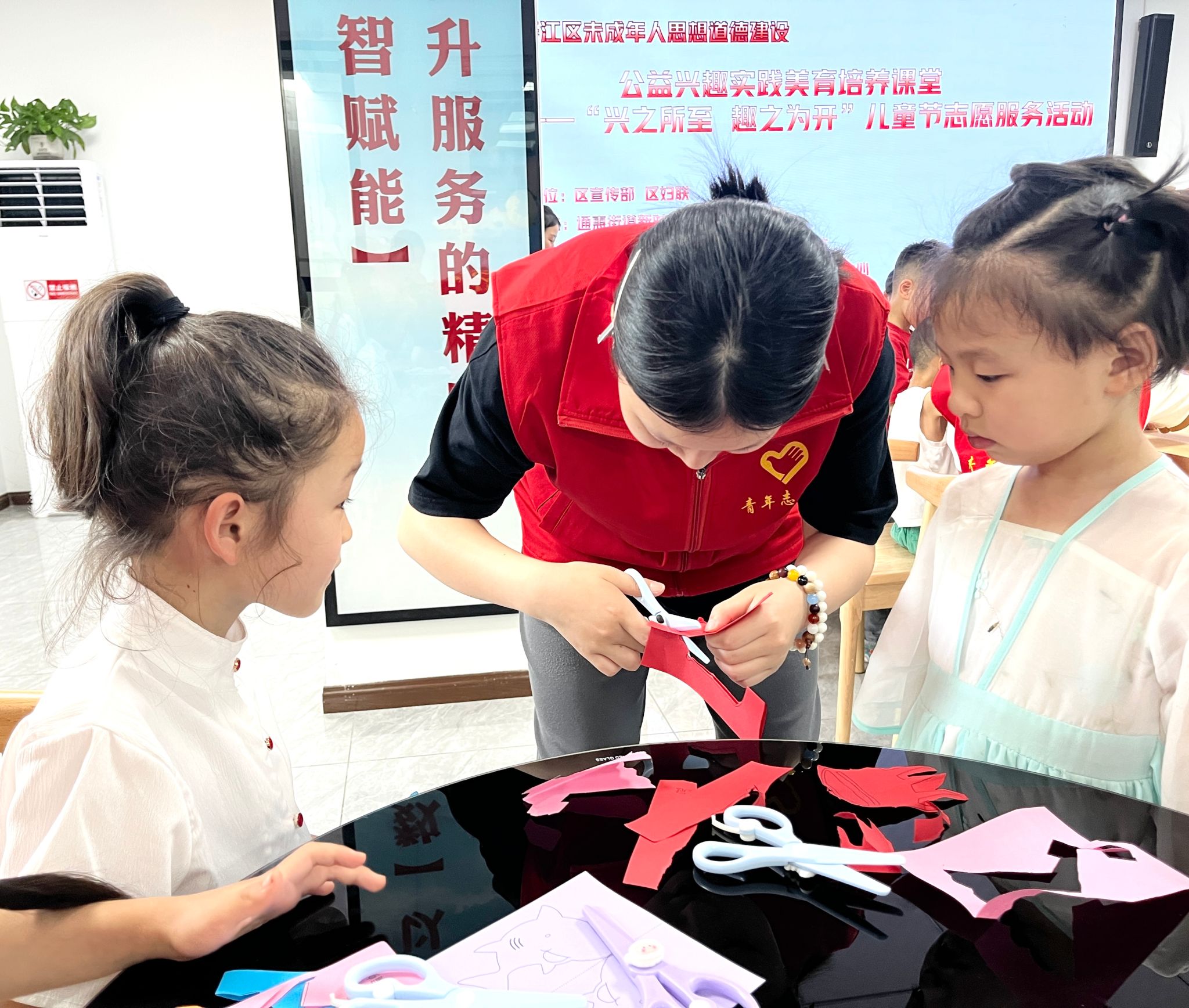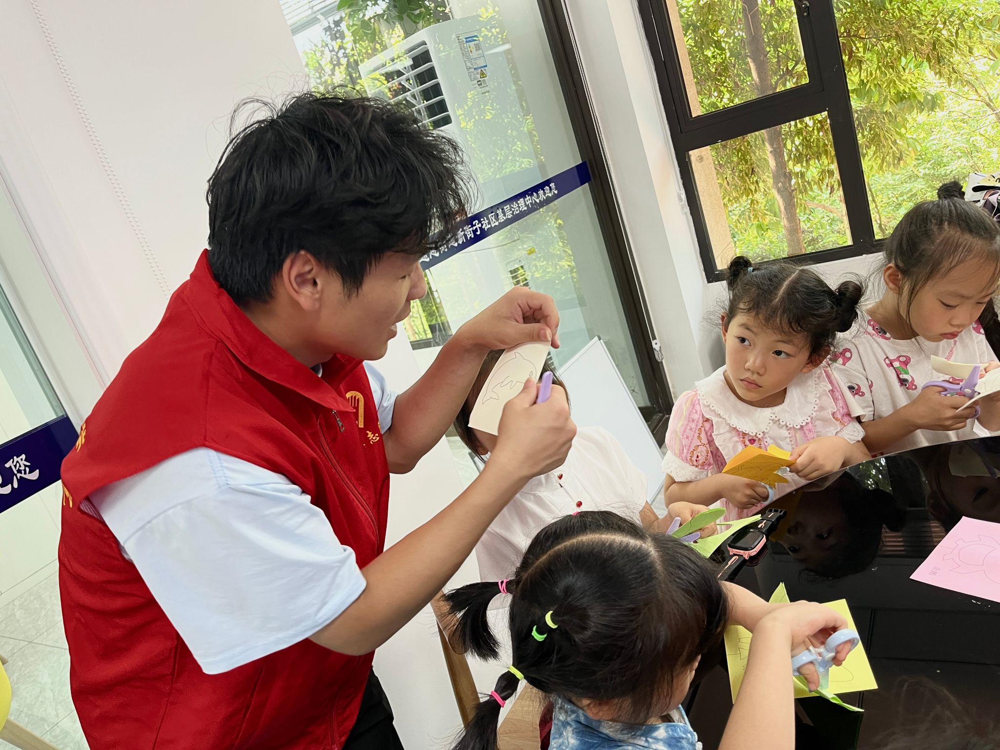 此次活动中,志愿者们扮演着引导者和启蒙者的角色,他们倾听孩子们的心声,耐心指导,希望以此帮助孩子们找到自己的兴趣所在。不同兴趣组的志愿者们,通过剪纸、绘画、手工等多种创意方式为孩子们打造了一场丰富多彩的实践体验,让他们在实践创作中感受乐趣与成就。 在兴趣实践中,孩子们展现出了惊人的创造力和无限的潜力,他们的作品充满了创意和灵感,为本次活动注入了无限的活力,使整个活动更加生动有趣。