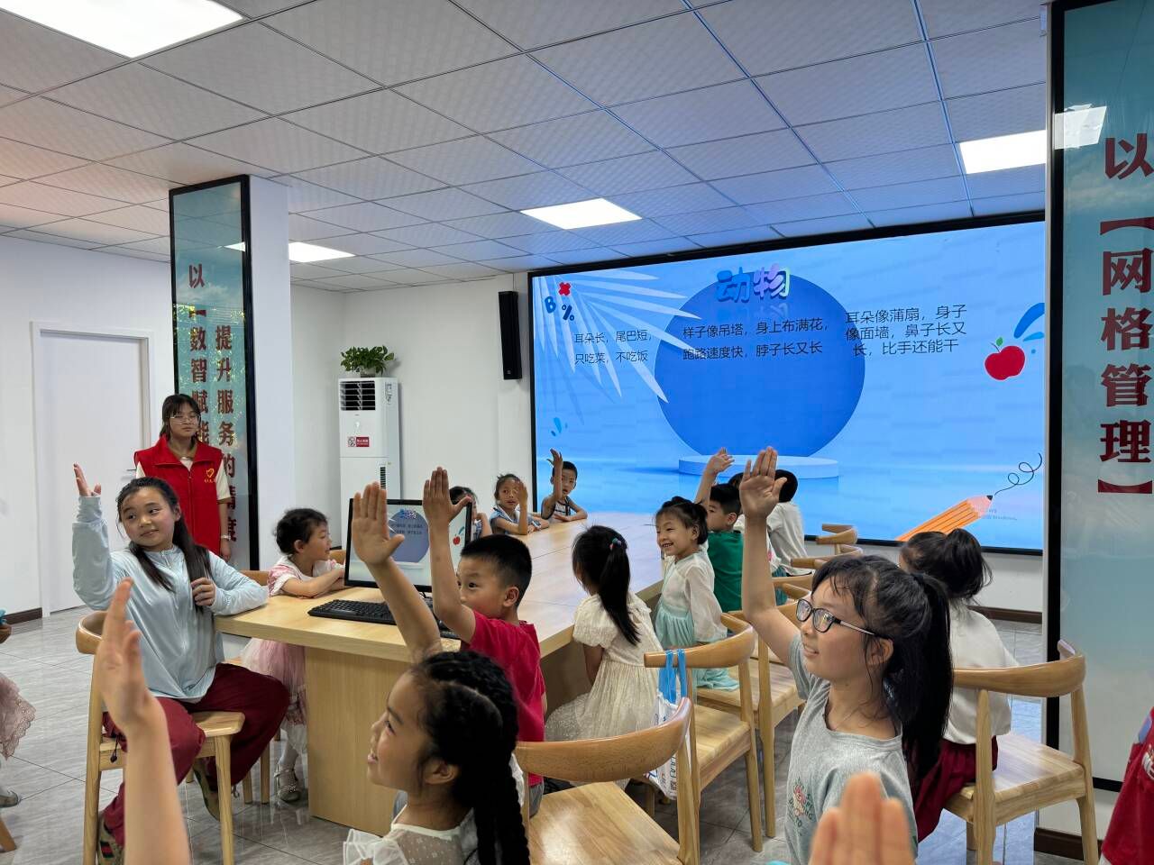 “我来猜猜猜”环节在志愿者们的悉心引导下如火如荼的展开。伴随着音乐的旋律,神秘谜底的揭晓更是让小朋友们兴奋不已。活动中志愿者们以耐心和关爱引导着孩子们释放自己的想象力,鼓励他们自信地举手作答。孩子们不仅探寻到正确的答案,更在试错中汲取了成长的智慧,收获了宝贵的经验。整个环节洋溢着和谐愉悦的氛围。这一活动不仅丰富了孩子们的课余生活,更在他们幼小的心灵中点燃了对未知世界的好奇之火,激发了他们探索未知的强烈渴望。