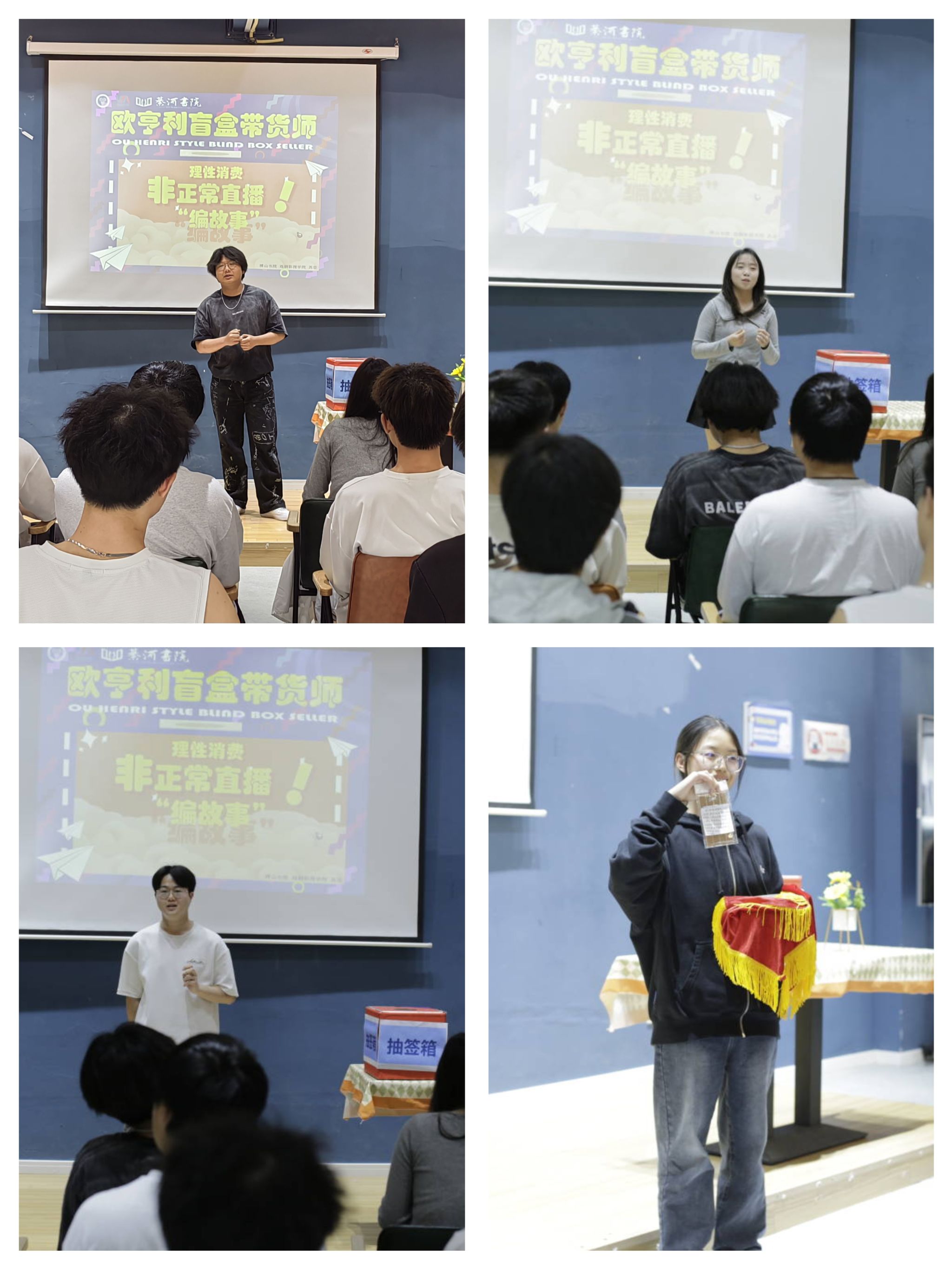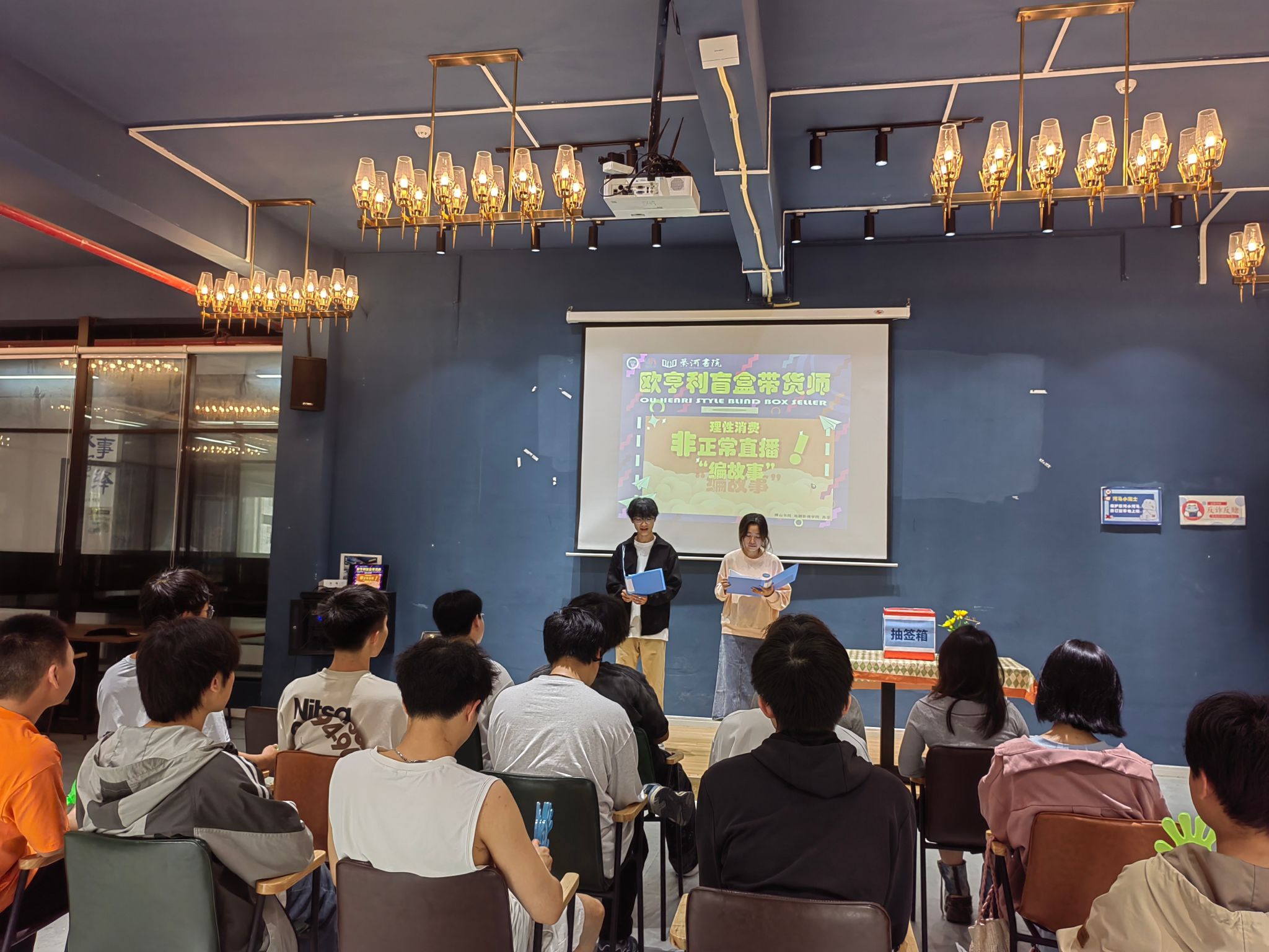 当这些故事产品变换形式以欧亨利盲盒出现后,同学们仅凭主播的一些描述,就进行“下单”。在活动最后,我们也对“下单”的同学进行采访,拿到盲盒之后的一个心理变化。大部分同学都表示“这个跟我想象的不一样。”其实生活中,也有很多这样的陷阱,很多隔着网络的推销,更加的不真实。本次活动的最后也是进一步的在提醒同学们警惕消费陷阱、提高防范意识、注意甄别理性消费。