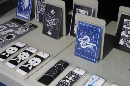 本次展览另一个重要的展示环节,是将学员们的作品转化成具有文化传播价值的IP形象,精心制作的作品,在笔记本、书签、明信片上展现出独特的魅力。同时,工坊指导老师还将学员们的作品延伸为钥匙扣,贴纸,冰箱贴等文创材料,让作品想象变得更加鲜活生动。