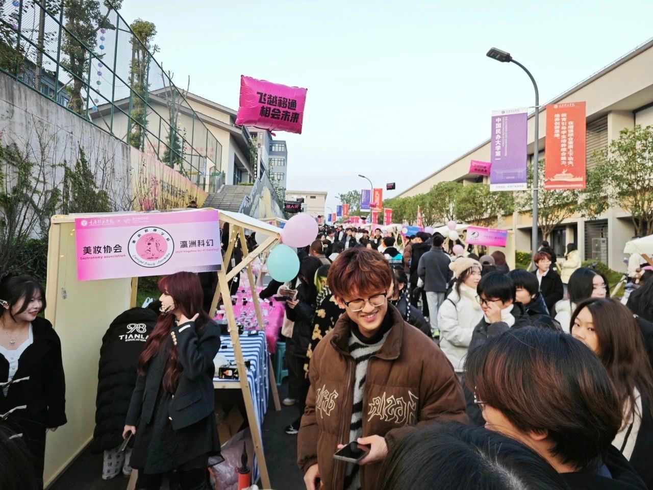 未来集市作为此次科幻嘉年华中最大规模活动,由瀛洲科幻学院和校团委共同策划。20多个摊位在北渡食堂门口集结,展示了丰富多样的科幻元素和创意产品。瀛洲科幻协会、Colorful美妆协会、巴别塔动漫协会以及美食协会等共18个协会参与展出了各自特色的项目。特别值得一提的是,美妆协会的成员们为参与者提供了专业的科幻妆容服务,让师生们在参与活动的同时,也能亲身体验到科幻文化的魅力。