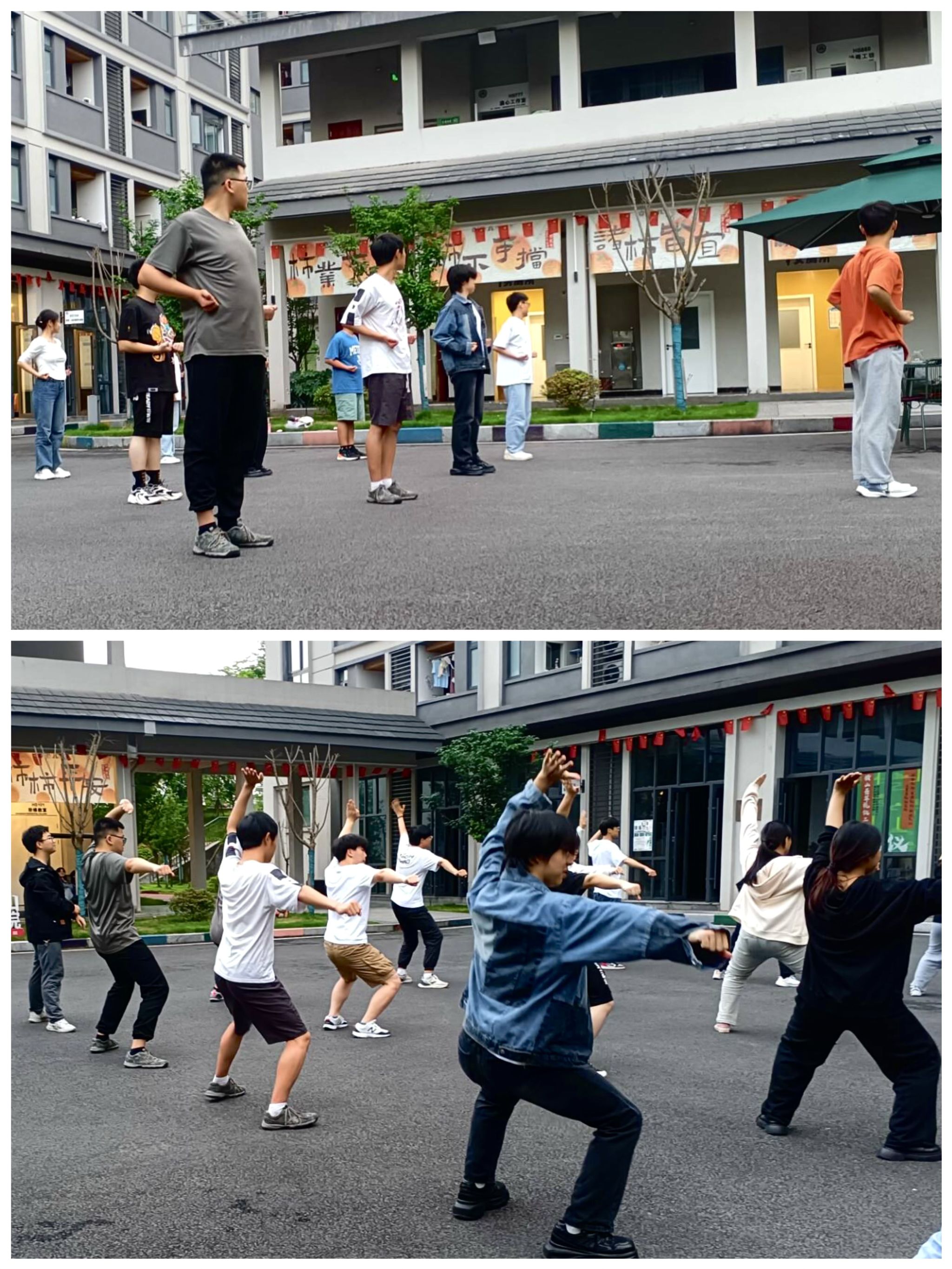 4月25日19:00,全速热“练”行动第八期活动在横山书院中庭亮相,本期活动由2022级玉棠书院、信息安全学院、校武术队队员杨聪同学为大家带来完整的《五步拳》教学。“胳膊要抬高,动作要有力,弓步后腿要绷直……”杨聪学长一边示范,一边详细讲解着《五步拳》的动作要领,同学们全神贯注的练习着“弓步推掌”“勾手蹬腿”等动作,在武术要领中塑造体魄,修炼身心。带教学长杨聪在活动的最后说道:“五步拳的练习需要耐心和毅力,每一次招式转换都要精准到位,每一次呼吸配合都要恰到好处,希望大家能静心的在武术修炼中找寻本无、塑造本我”!