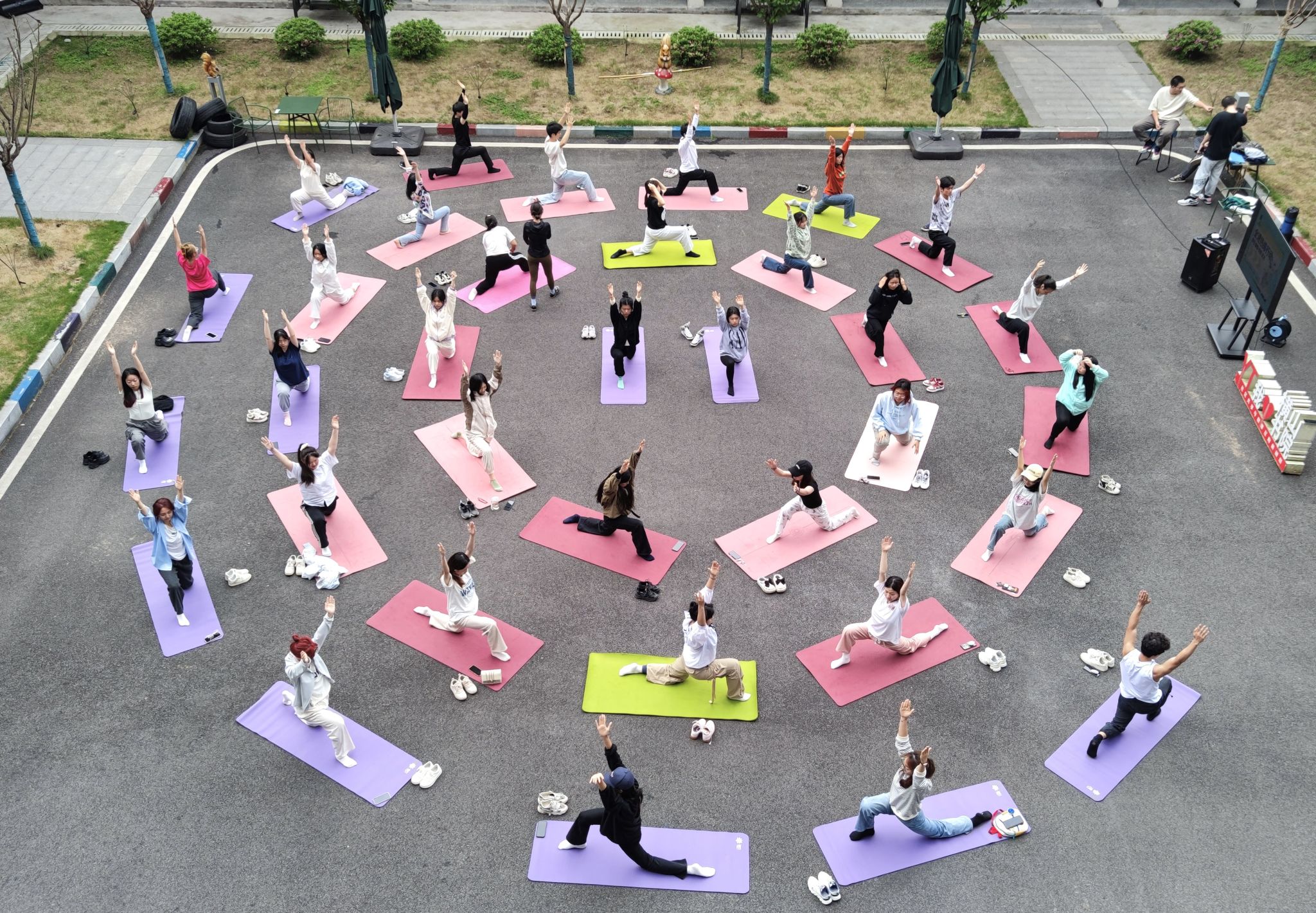 春日唤醒五彩的校园,全速热练行动第六期活动场地也从室内调整至户外,户外瑜伽活动于4月10日16:00在横山中庭优雅开启。置身室外,沐浴在温暖的春日阳光下,感受着空气中弥漫的花草芬芳,为同学们营造了绝佳的练习环境和美妙的春日氛围。在全美联盟RYT200专业瑜伽教练刘润逸老师的专业指导下,同学们从基本动作开始,逐步深入。呼吸均匀,身体舒展,与绿草如茵的大地和轻柔的微风完美融合,精神在这一刻得到了全新的焕发。每一次伸展都展现出瑜伽的柔韧与力量,在一呼一吸间向内探索,在一伸一展中觉知放松,让所有感官在春日里如新生般绽放。