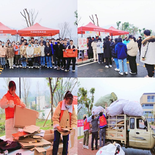 工商管理类4班的同学在实训楼旁的空地开展了“汇聚百废·切莫浪费”的志愿服务活动,旨在让同学们将身边的废物变废为宝,为环境保护、资源回收贡献力量,将回收物折算成公益资金,为公益赋能,为志愿助力!根据数据显示,本次活动吸引了千余名同学的参与,获得了大量的“五星好评”,短短五小时回收了4500余个纸箱和800余个矿泉水瓶。本次活动不仅提高了全校同学的环保意识,打造了全员环保、助力公益的校园氛围,更是响应了国家“走可持续发展道路”的号召。