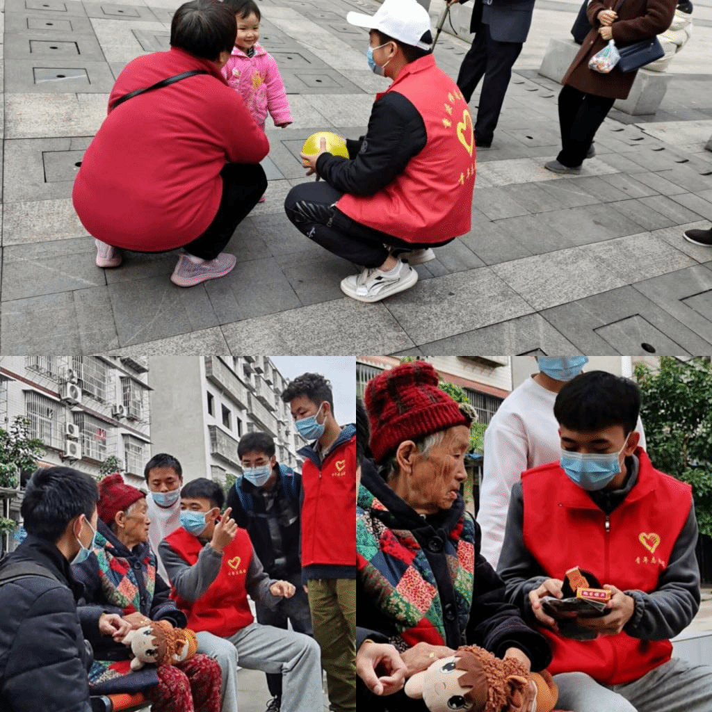 工商管理类15班和25班班团支队为老人们送去了爱心和温暖。15班班团支队以“公益在线·爱心无限”为主题,来到学校对面的三桥村,为孤寡老人送上手套棉帽,唠嗑家常,让他们感受到冬日里的一份“移通温暖”。25班的同学在綦江盘山广场一边为老人发放爱心口罩,一边做防疫知识宣传,充分展现了我校积极配合疫情防控工作和志愿者关爱老人的温暖情怀。15班和25班每一位同学的力量齐聚一“綦”,展现了商院学子主动奉献的精神风貌。