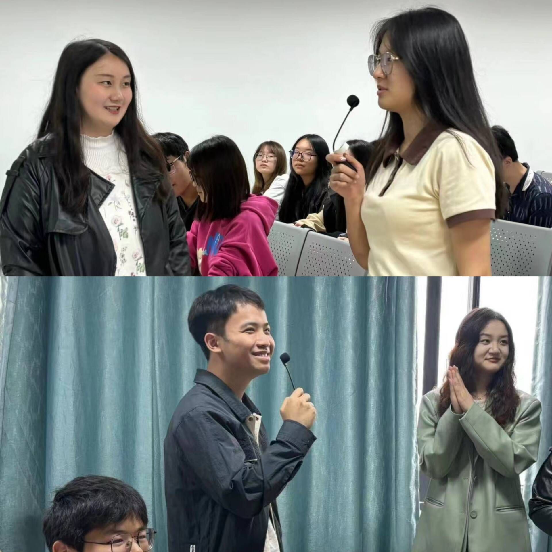 授课伊始,为引导学生深入学习贯彻总体国家安全观,切实增强学生忧患意识与使命担当,贺铭钰和欣琳两位老师从已公开发布的国家安全警示教育案例中选取四个场景,学生以角色扮演、情景再现的方式“沉浸式”接受国家安全观主题教育。情景体验结束后,贺老师结合参与体验学生的切身感受,带领同学们领会国家安全的重要性。贺老师结合《毛泽东思想与中国特色社会主义理论体系概论》课程内容,以历史脉络为线索,展现党和国家始终重视国家安全,并以对话方式自然过渡,实现双师授课。接着,洪欣琳老师从法律角度分析了国家安全的定义和重要性。随后,两位老师通过随机抽小游戏的方式与学生展开互动,引导学生深入认识总体国家安全观及其“五大要素”间的相互关系。最后,两位老师分别带领同学开展小组任务,就“大学生可能遇到的国家安全场景”、“大学生反间谍:筑牢国家安全防线”、“大学生如何维护国家安全”等问题进行深度讨论。两位老师以相互提问的方式,分别从国家、学校、家庭、个人四个角度总结了新形势下维护国家安全的具体要求和措施。