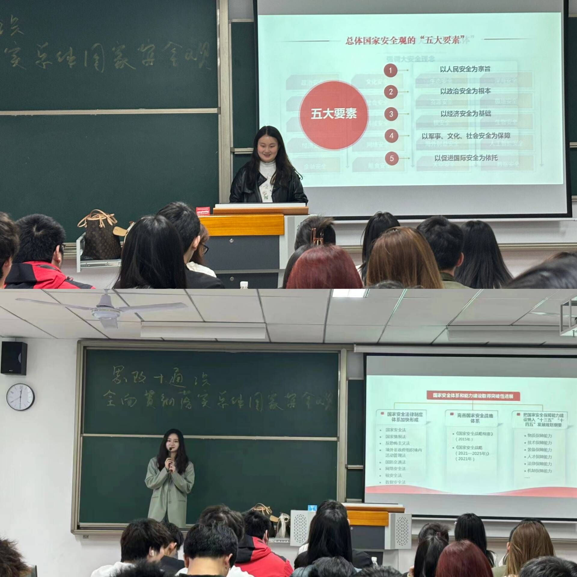 为进一步贯彻落实习近平总书记关于“大思政课”的重要指示批示精神,整合各类教学资源,进一步提升我校思政课教学质量,加强学生总体国家安全观教育。2024年4月24日,马克思主义学院(綦江校区)携手通识教学部开展“思政+通识:全面贯彻落实总体国家安全观”双师授课。本次双师授课由形势与政策教研室贺铭钰和通识教学部洪欣琳两位老师共同主讲。
