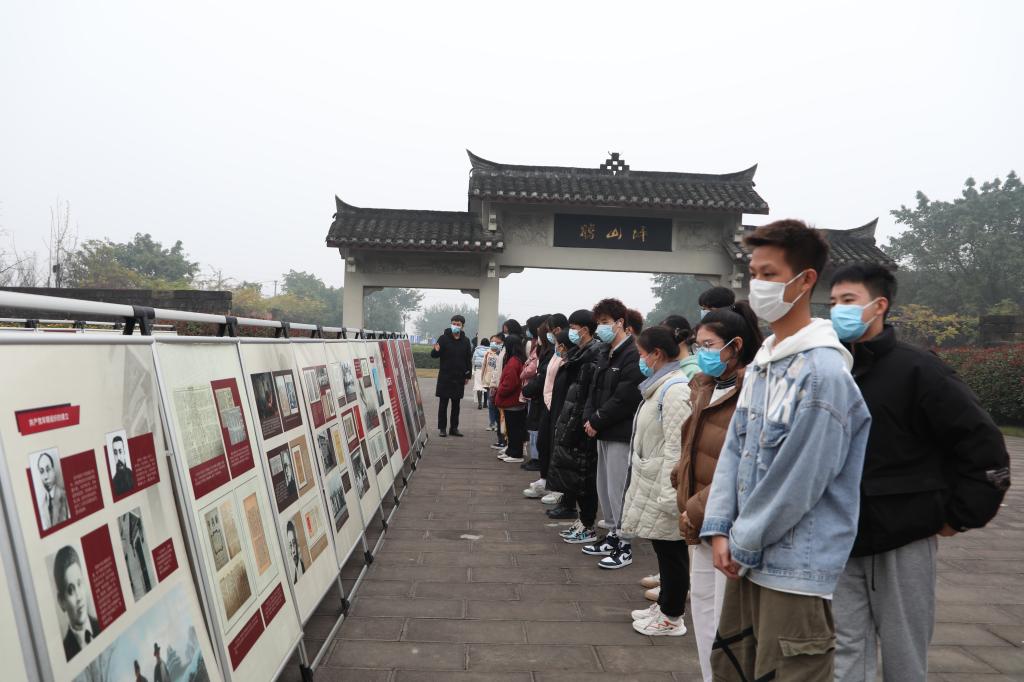 为丰富学生党史知识,提高学生思想觉悟,加强“四史”教育,2021年12月10日下午,綦江校区公共基础教学部思政组吴雪娇、刘晓村、王郡老师组织学生代表30余人前往江津陈独秀旧居陈列馆参观学习。
