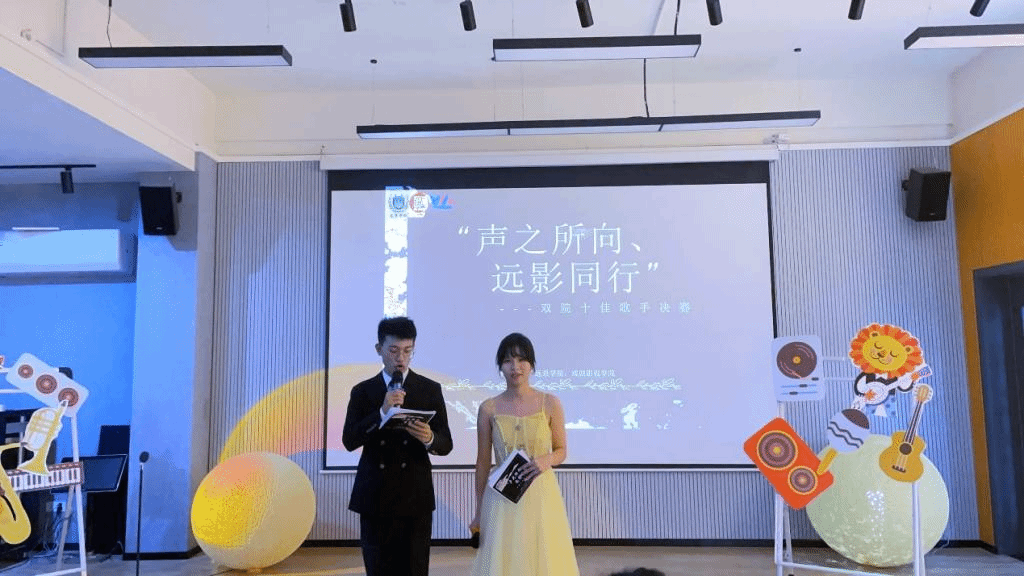 秋风桂花香,却话厅间歌声亮。由远景学院和戏剧影视学院联合举办的“声之所向,远影同行”——两院十佳歌手大赛于10月21日晚19:00在綦江校区远景书院艺术活动室拉开序幕。莅临本次大赛的评委有:綦江校区艺术教育中心表演老师张芷璇、舞蹈老师黄小寒,远景学院学工办主任郭淼,戏剧影视学院学工办主任曾玉娇,戏剧影视学院辅导员潘锐,远景学院辅导员莫殷。本次比赛通过三轮比赛全方位地展示选手风采、展现音乐魅力,最终脱颖而出的八名选手,也将获得校园十佳歌手大赛复赛直通卡。