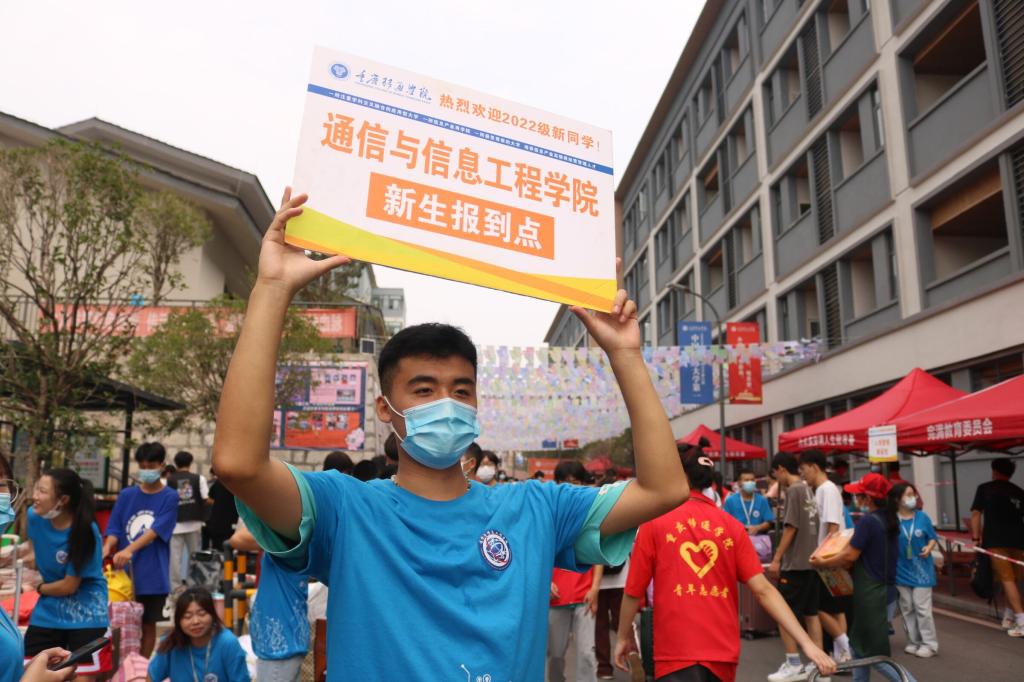 金秋九月,秋风送爽,丹桂飘香。又是一年迎新时,来自五湖四海的学子,背上行囊,离开家乡,齐聚移通。2022年9月15日,重庆移通学院迎新工作正式开启。2021级的学长学姐们身着红蓝马甲,穿梭忙碌于校园之中,喜迎学弟学妹们的到来。他们用微笑迎接着学子,用热情温暖着学子,用辛勤服务着学子。条条横幅是学院最美好的祝福,张张笑脸是学长们最真挚的流露。一字一句皆为祝福,一言一行温暖人心,让我们一起喜迎来自祖国各地2022级莘莘学子的到来。