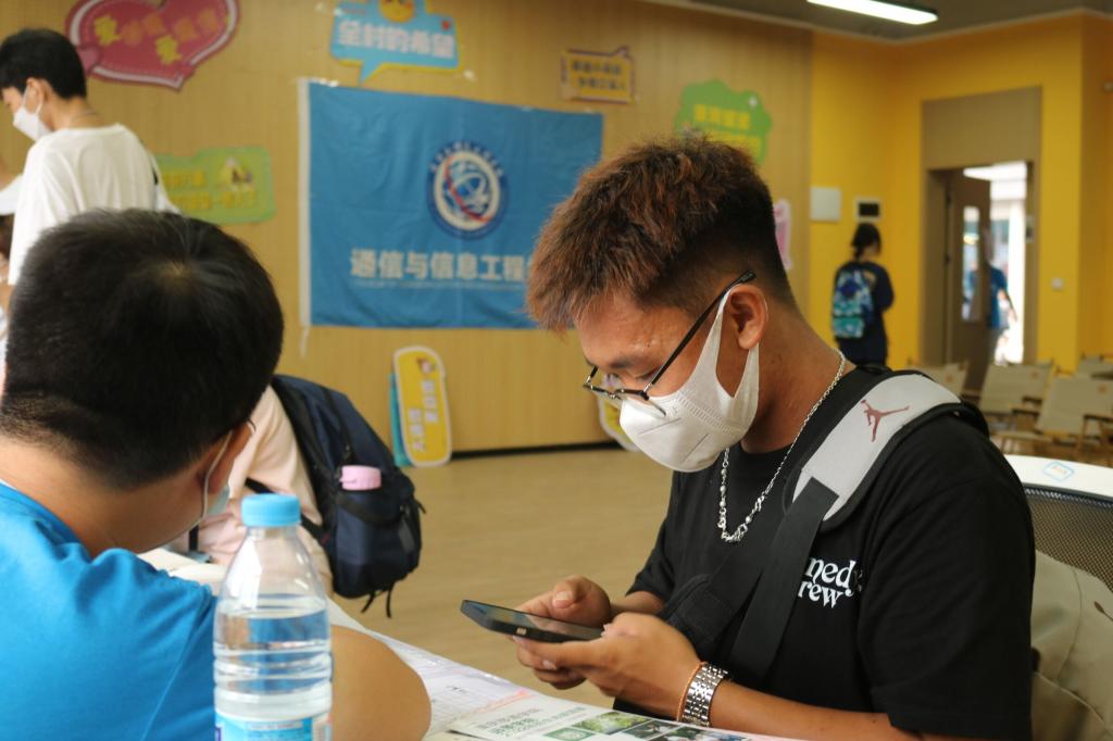 热情迎新志愿忙,辛勤助新暖人心。迎新工作如火如荼的开展,身着红蓝马甲的志愿者们穿梭往来,学长学姐们不厌其烦的为新生与家长们答疑解惑,志愿者们争先“抢”过沉重的行李,引导学弟学妹们前往报到地点,一路谈笑风生,和睦友爱,使初到此地的学弟学妹们感受到如家一般的温暖,感受到来自移通大家庭的关怀与祝福。