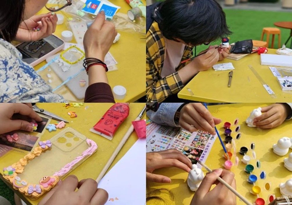 阵阵春风拂过,一道道灵感涌入脑中,在张正钰老师与电影协会干事的引导下,同学们在石膏娃娃与透明的手机壳上及卡纸上肆意地挥洒着自己的灵感和创意,将自己喜欢的影视IP与春日主题结合,打造出一个个独属于自己的春日限定电影手作。