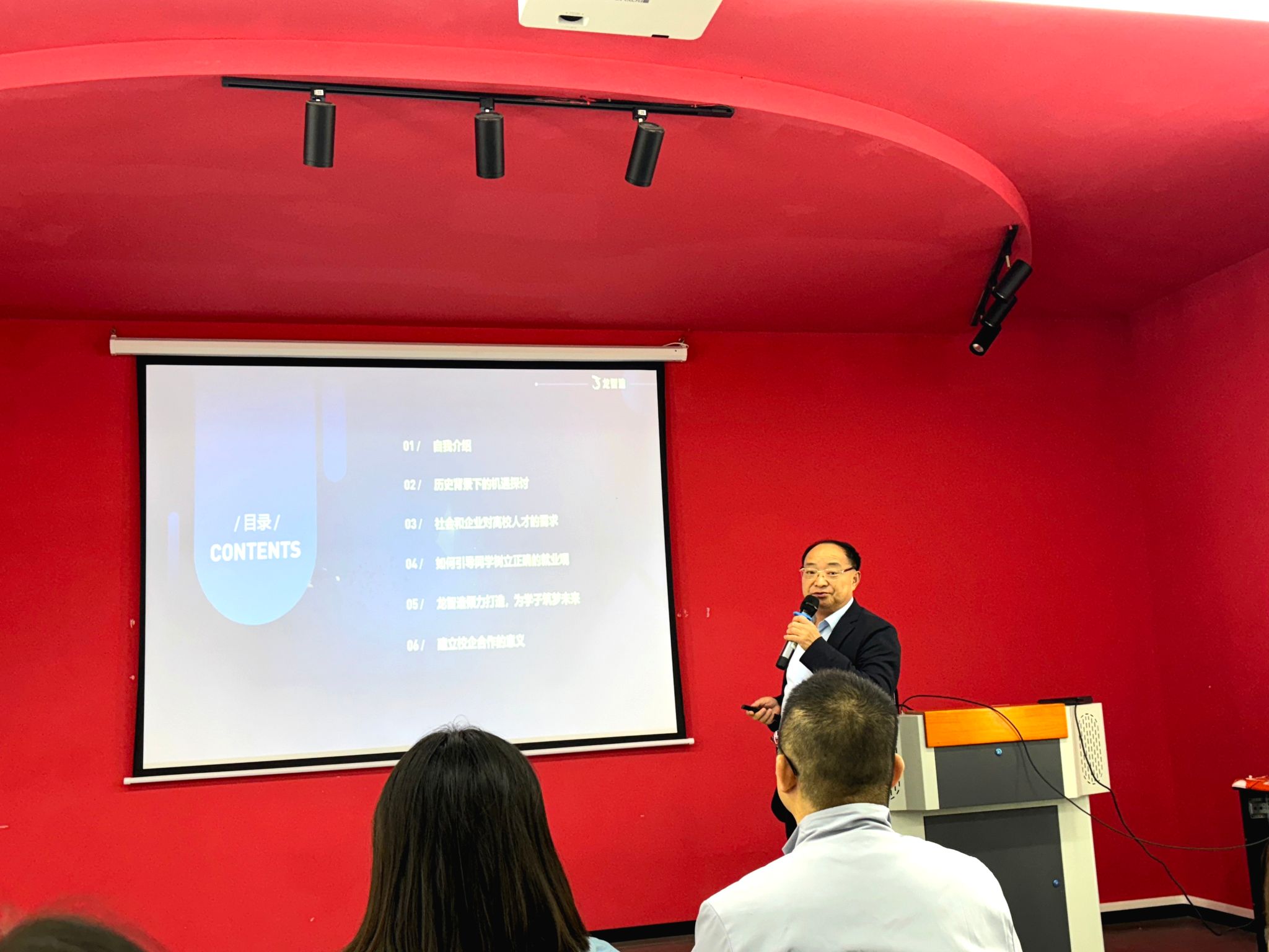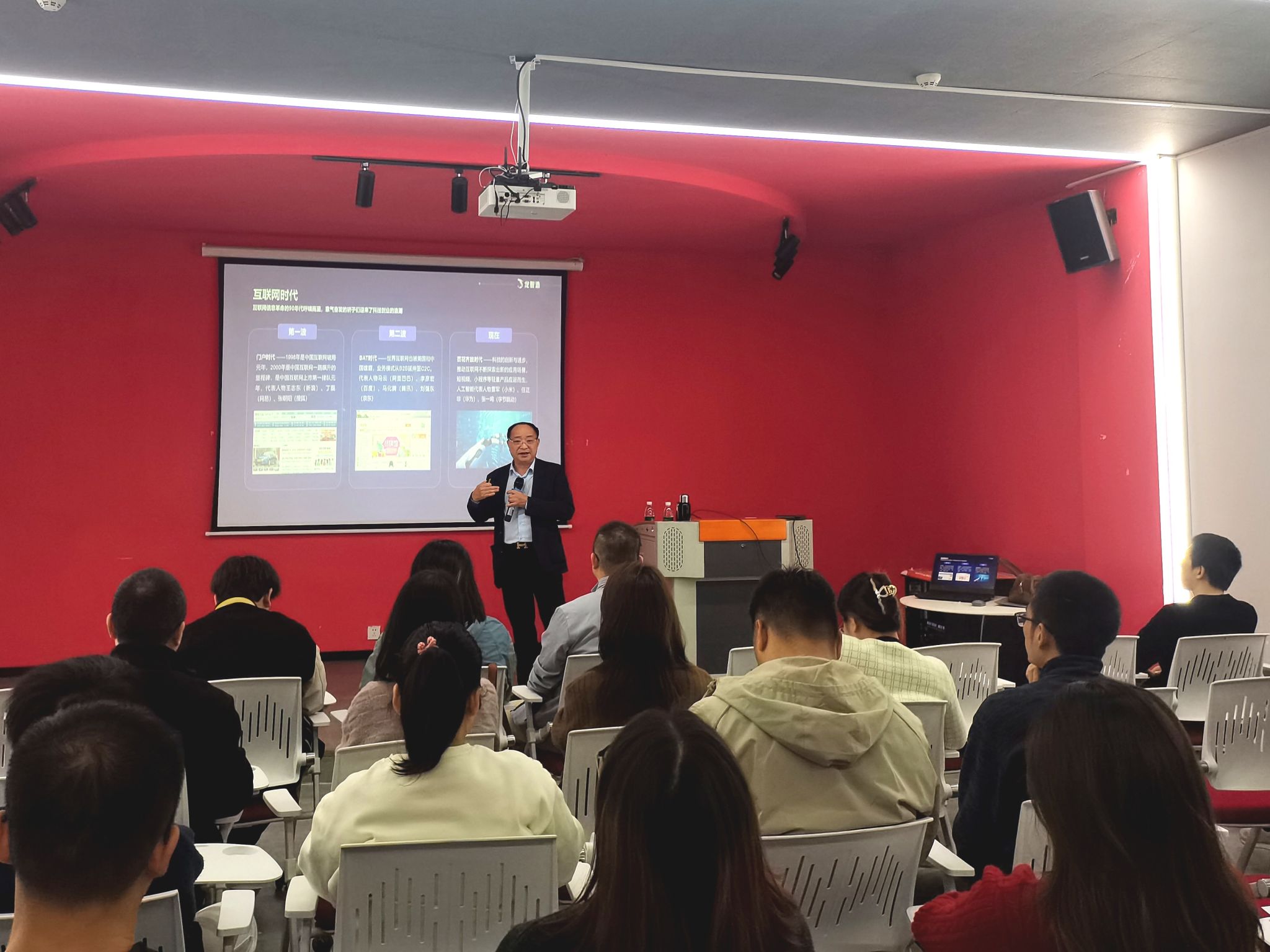 讲座伊始,林院长介绍了主讲嘉宾,并鼓励教师与胡总积极沟通交流。胡总为我们介绍了互联网不断推出新的应用场景,如短视频、小程序、人工智能等,强调社会和企业对高校的人才需求情况,高校要培养综合素质高、持续学习能力、解决问题能力的复合型人才,为我们分享了重庆龙制造互联网科技有限公司以及其与重庆移通学院校企合作案例,鼓励师生加强实践教学,开展校企合作,共同研发、校园创业,让学生融入真正的工作环境增加就业竞争力。