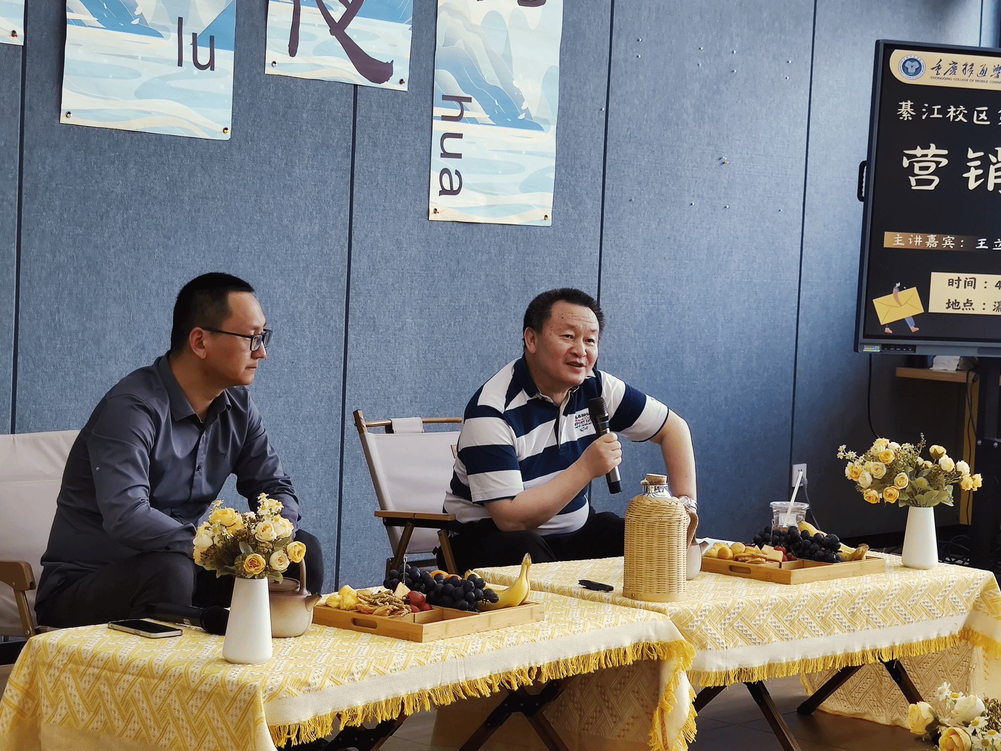 随后,王立新教授分享了自己的创业历程和心得。他表示,将人生视为一个品牌进行营销是非常重要的。他鼓励学生们要勇于尝试、不断创新,并学会从市场的角度看待自己的发展。同时,他还分享了一些创业经验和心得。一是青年学生应该深入了解自己的兴趣爱好和才能。选择自己感兴趣的职业,保持动力和热情。二是青年学生需要关注职业前景和社会价值。以致于得到更多的职业发展机会和空间。