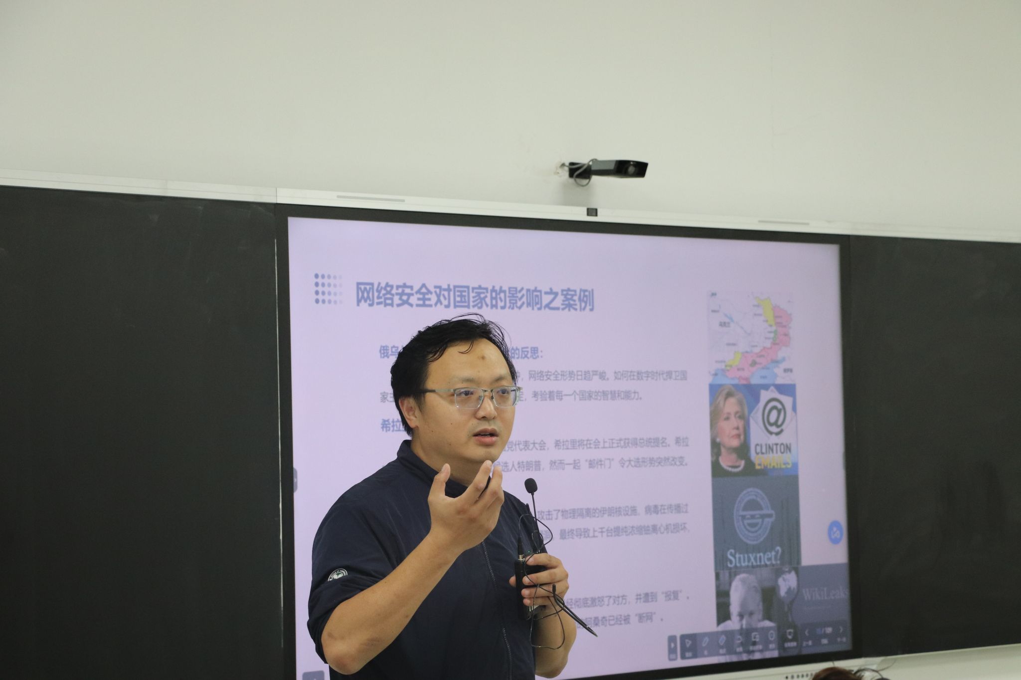 迎合当下网络安全重要性日益提高的状况,潘良晋老师则从网络安全与人们日常生活的紧密关系入手,深入浅出地阐述了网络安全的概念和重要性。他通过一系列真实案例,揭示了网络信息泄露的严重性和潜在风险,为学生们敲响了警钟。潘老师还进一步分析了网络安全领域的发展趋势和挑战,并指出随着技术的不断发展,新的攻击手法和防御技术层出不穷,网络安全形势日益严峻。他呼吁学生们要不断提升自己的网络安全意识和技能,积极参与网络攻防比赛等实践活动,以更好地应对网络安全挑战,共同守护国家网络安全。