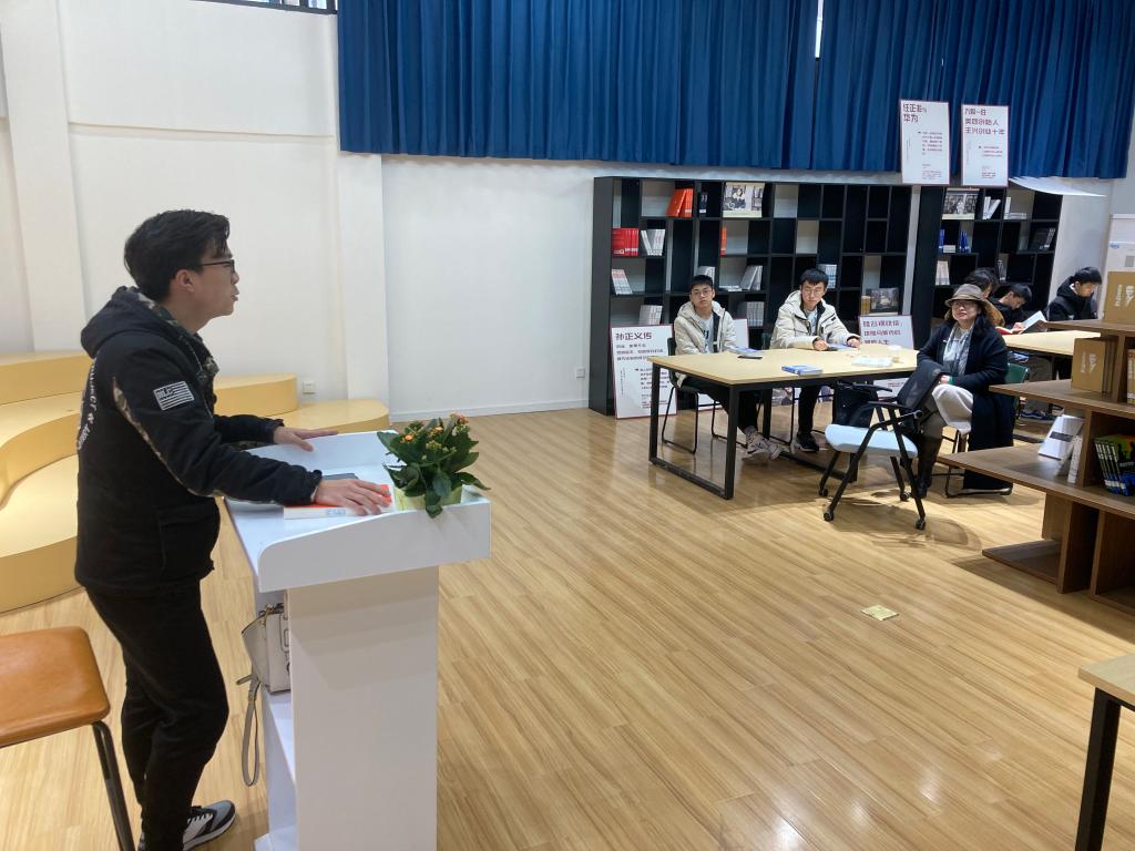 其后,綦迹创意文学社的唐瑞锋也上台进行了读书分享,他分享的是小米手机创始人雷军的故事,同学们对他的分享发出了热烈的掌声。