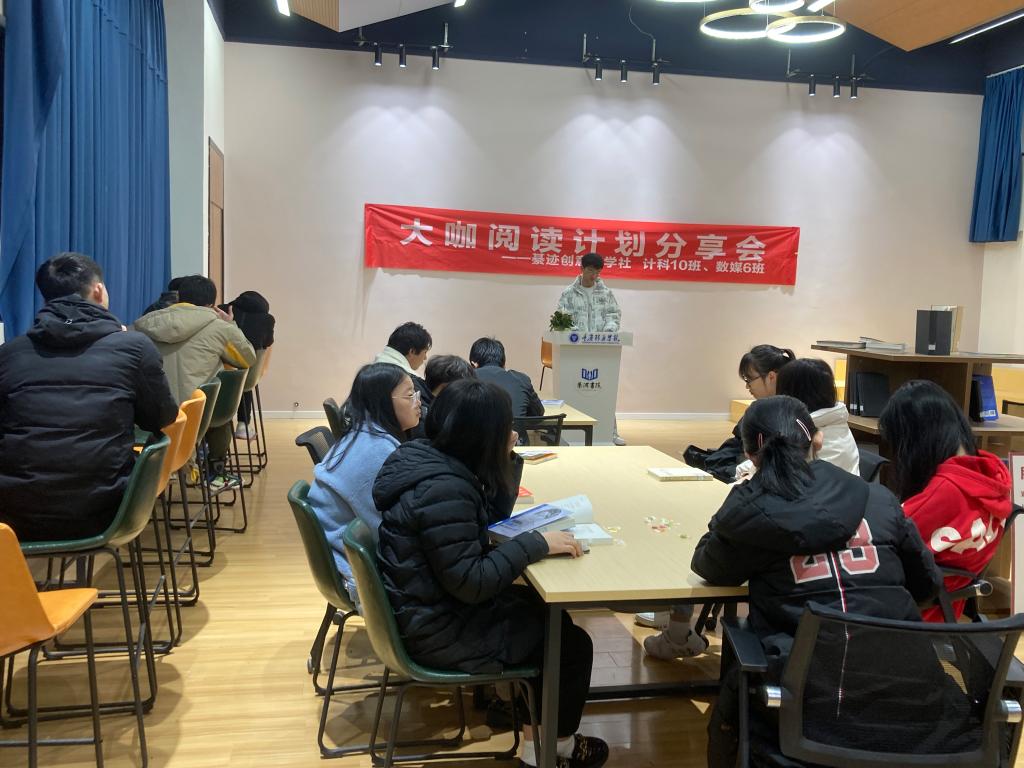 格力电器成为全球空调行业的一大巨头,这很大程度上要归功于董明珠的创业精神和管理魄力。为了更好地了解名人,为了同学们更好地向名人大咖看齐,在12月17号,萧婷婷老师组织了一场联合分享会,綦迹创意文学社与计算机科学10班、数媒6班的同学们一起聚集在綦河书院大咖阅读室,集体讨论分析阅读《东方明珠——董明珠》这本传记。