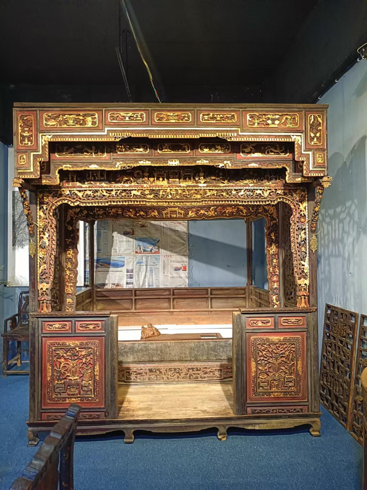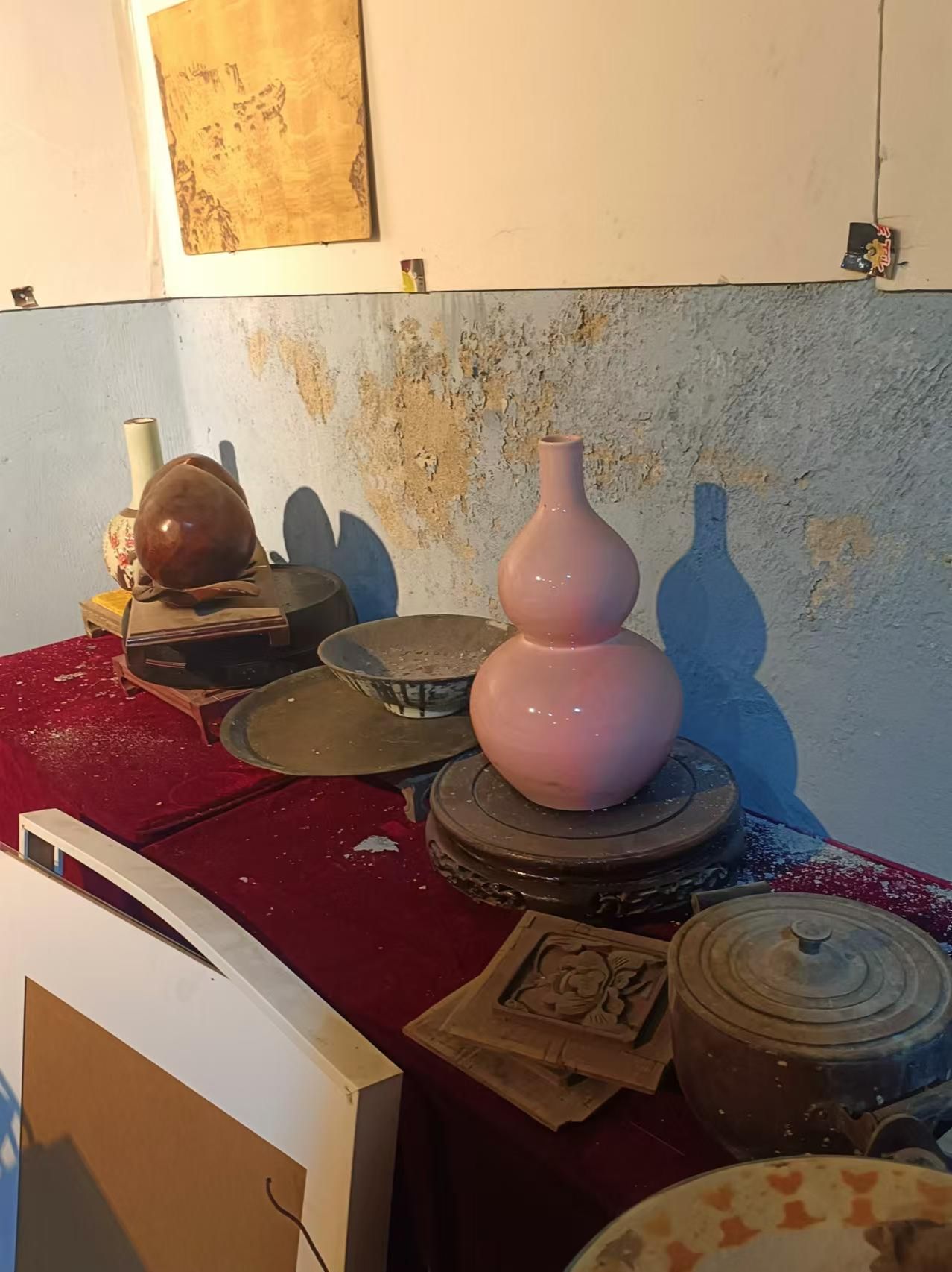 在彭浩老师的带领下,我们首先来到了王云先生的仓库。这里,这些物品虽然都染上了岁月的痕迹,但雕刻的工艺之精美,依然让人叹为观止。那些细腻的线条,仿佛在诉说着一个个动人的故事,让人沉醉其中,流连忘返。