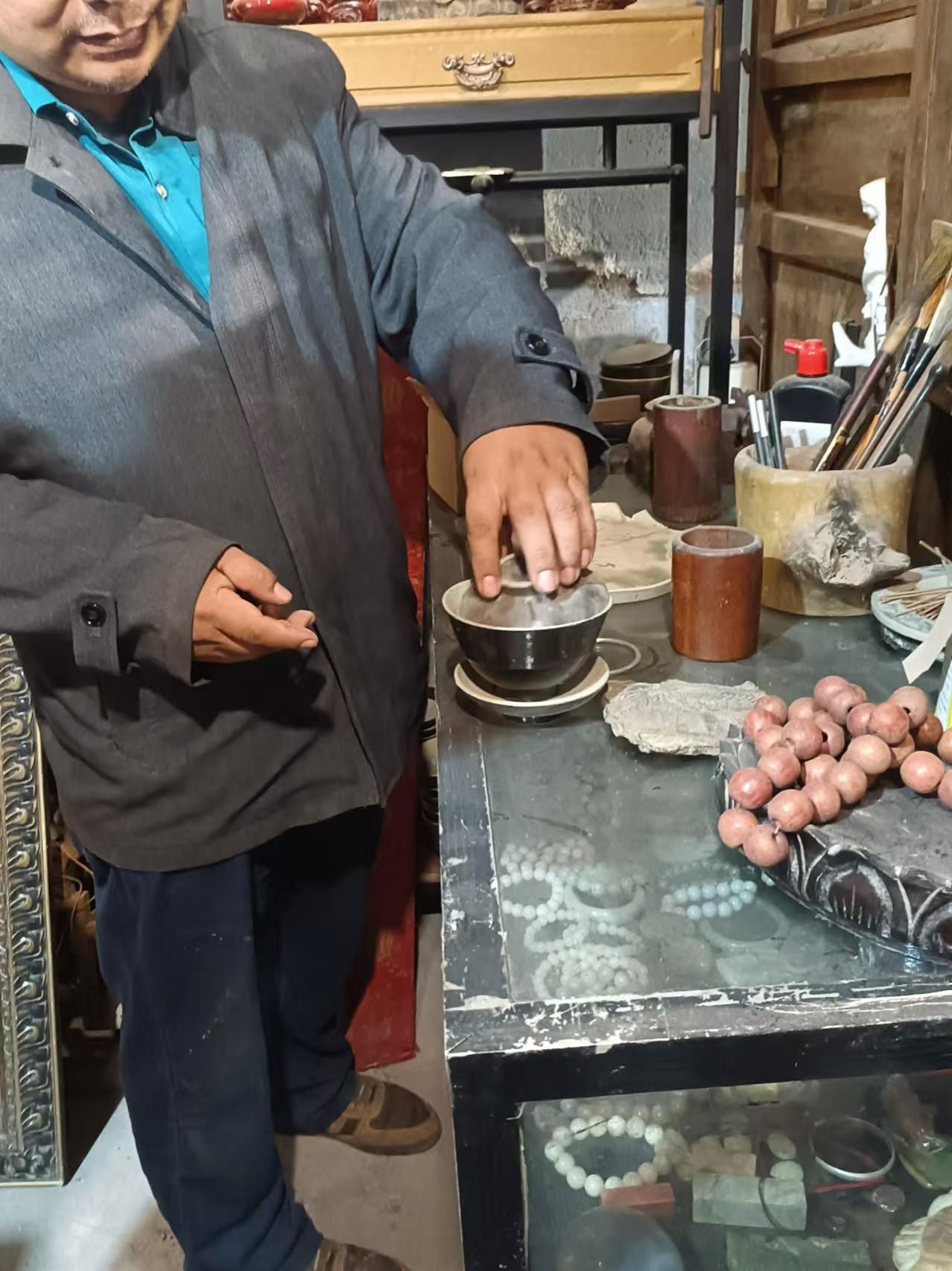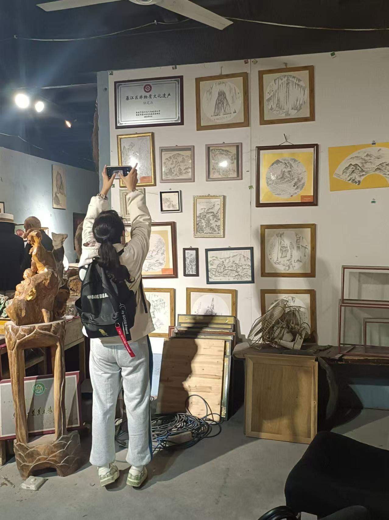 随后,我们跟随王云先生来到了他的古玩店。门打开的那一刻,一股浓郁的艺术气息扑面而来。王云先生向我们介绍了这些藏品的来历和背后的故事,让我们对它们有了更深入的了解。在先生的讲解下,我们仿佛置身于一个艺术的殿堂,感受到了艺术的魅力和力量。