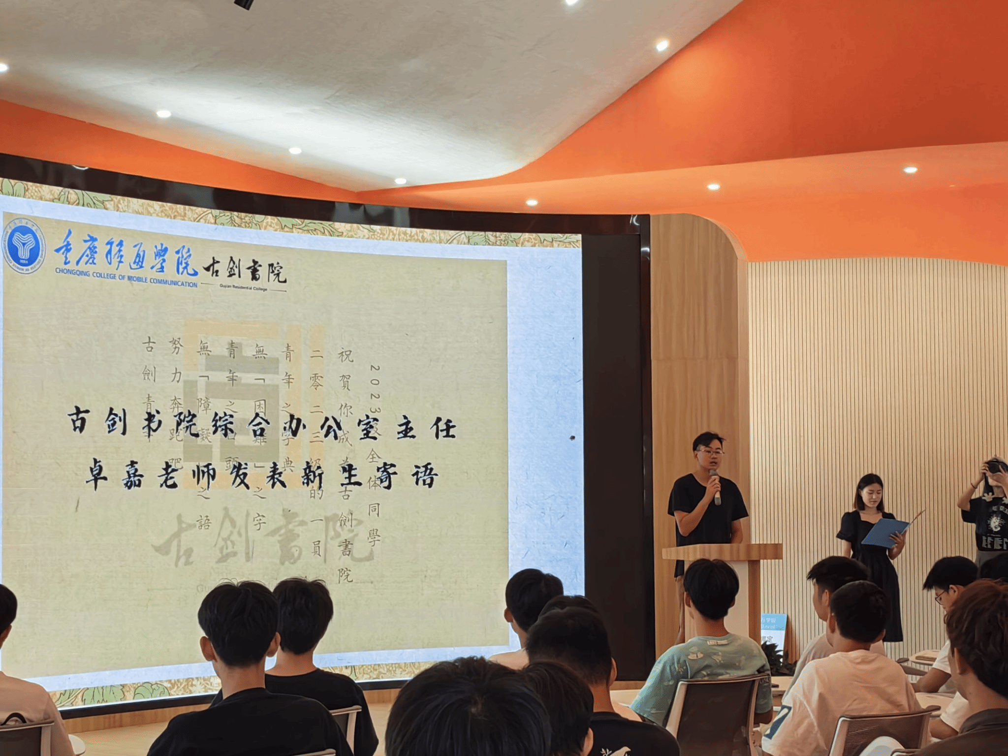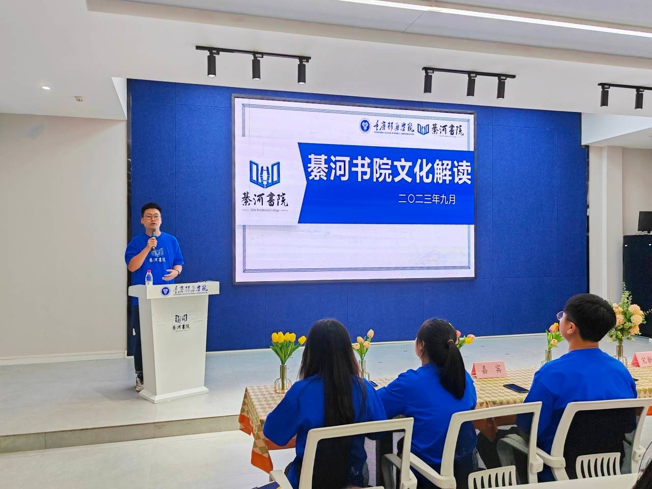 为营造书院家文化,让新生尽快适应新环境,了解书院、深入书院,綦河书院开展入院礼活动并邀请名誉院长——宋新宁教授,为入住在綦河书院的1390名新生“小河马”们进行暖心寄语。通过宣传片的形式来让同学们走进綦河书院,綦河书院综合办公室主任张天赐老师也对綦河书院的文化进行详细解读。在通信与信息工程学院新生李梁平同学上台发言中提到,在他得知自己被移通录取时内心的喜悦之情,进入书院惊喜发现丰富多样的功能室,都让自己充满了向往与自豪。