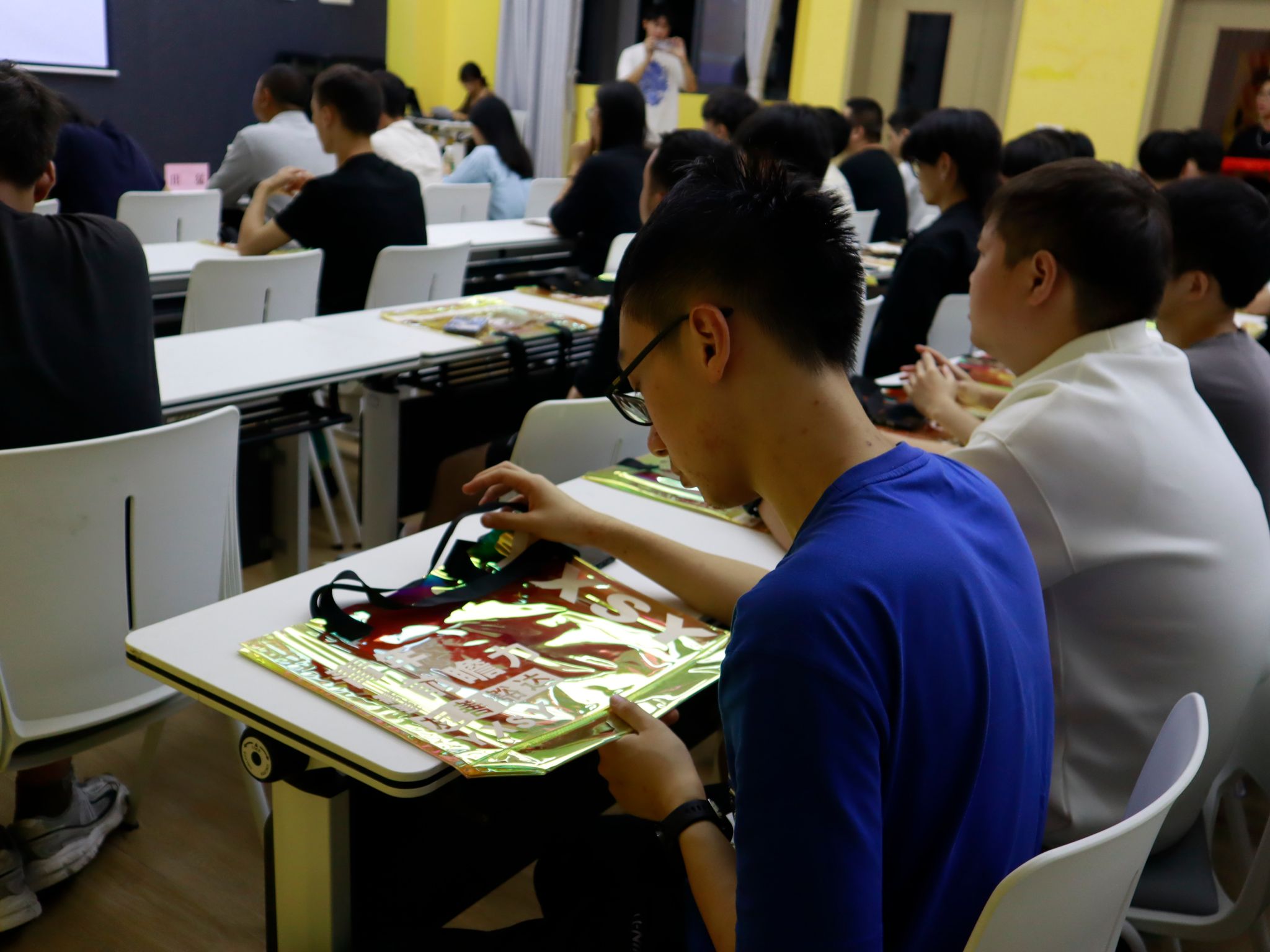 与此同时,在古剑书院GJ101含光·报告厅举行了入院证书颁发仪式,从书院宣传片中,新生们对书院空间有了进一步了解。古剑书院综合办公室卓嘉老师幽默风趣的新生寄语,使同学们感到书院轻快舒适的气氛。新生代表张云杰的发言,更是道出了这群“萌新“们的心声,展现出古剑学子朝气蓬勃的风貌。在书院教师团队精心的设计下,极具古韵的入院证书应运而生,这份独特的礼物也让学子们连连称赞。