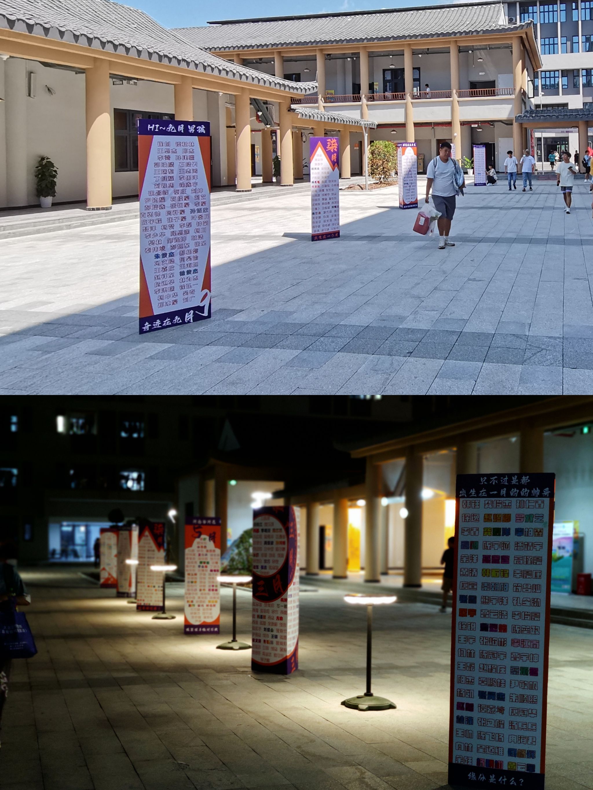 步入古剑书院,映入眼帘的是一根根铺满镂空姓名的生月柱,这是属于古剑书院1946名学子的浪漫。新生只需三步即可完成入院认证,学子们纷纷拿起笔来填色,这将是他们在古剑书院浓墨重彩的第一笔。