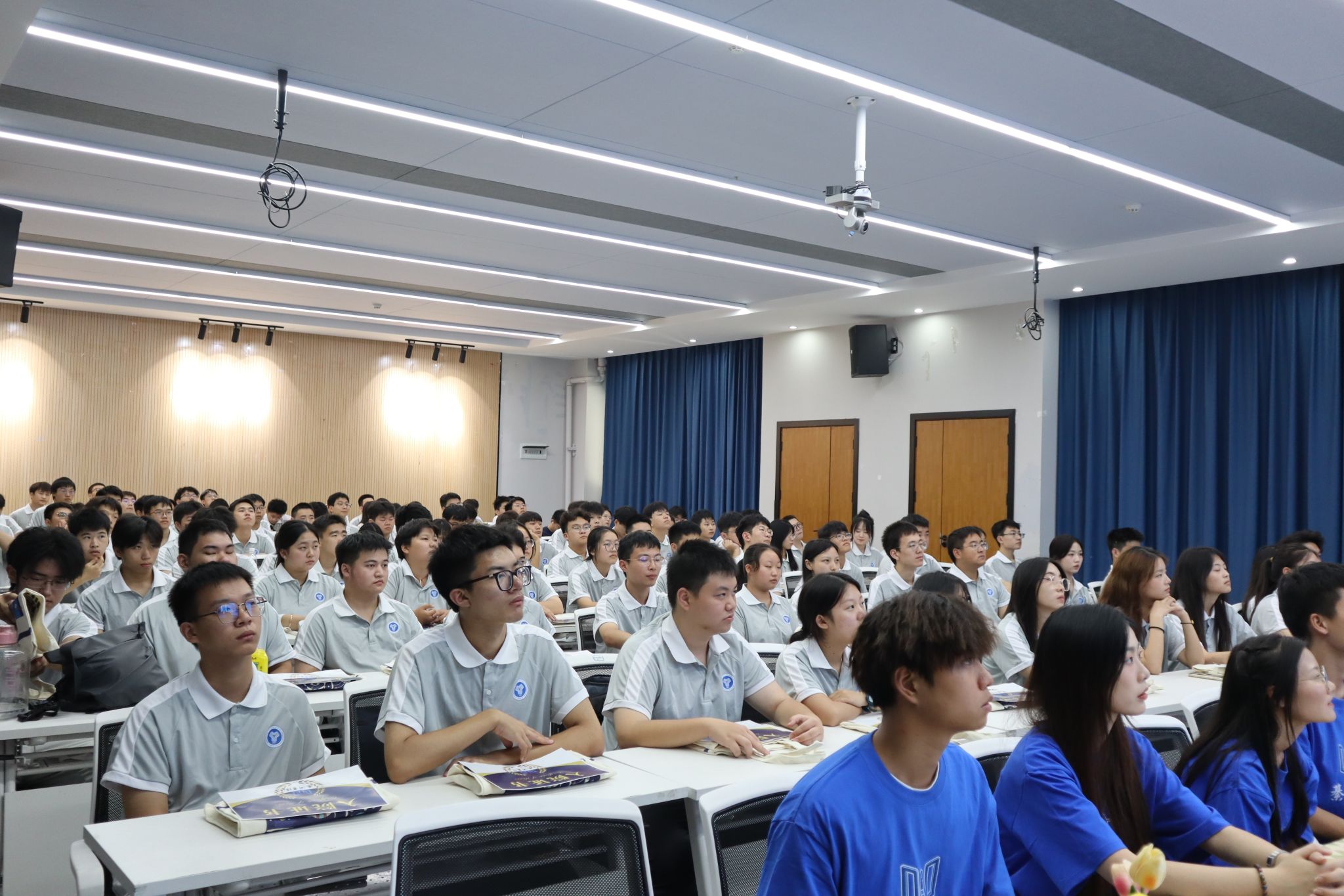 最后书院名誉院长范海涛老师通过分享自己过往经历,鼓励新生当像鸟一样飞过高山,像鱼一样遨游深海。借瀛溪前瞻之力,凭友善豁达,开成功之路。同时祝愿他们在瀛溪,在移通,能够遇见真正“完满”的自己,与瀛溪的家庭成员们一起为自己的青春彩纸上留下一幅满意的著作。
