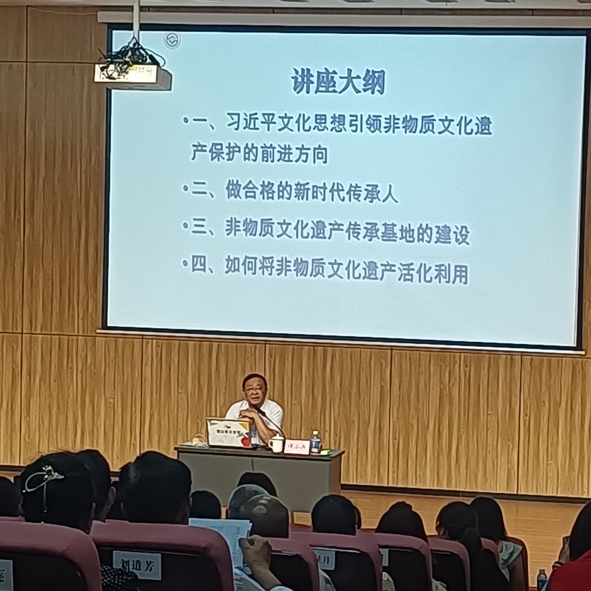 本次培训班为期一天,培训班由市非遗保护协会会长、市非遗保护中心学术顾问谭小兵,重庆移通学院綦江校区瀛洲科幻学院新媒体板块负责人陈慧两位专家为学员授课。两位将从非遗保护发展方向、建设和新媒体教学这两个方面为现场非遗工作者授课。课上,我院联合瀛洲科幻学院开展了《非遗新纪元》讲座,向传承人介绍了新媒体在非遗领域的应用。通过生动的案例,展示了新媒体如何为非遗传承搭建了一个全新的展示平台。