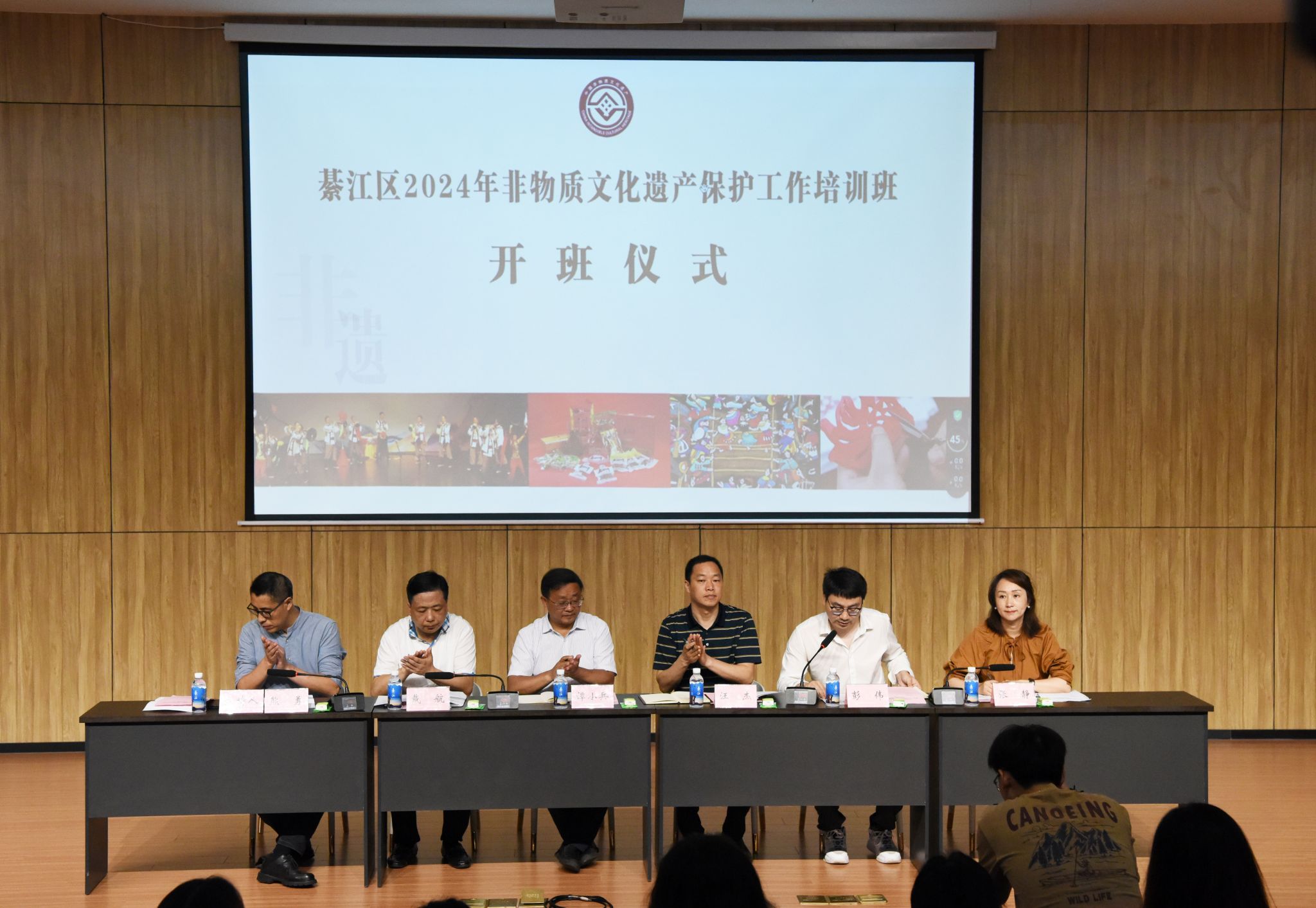 “守护非遗瑰宝 传承美育之光”,綦江区2024年非物质文化遗产保护工作培训班于2024年5月24日上午在贤者楼131举办开班仪式。该活动由重庆市綦江区文化旅游发展委员会、重庆移通学院(綦江校区)主办,重庆市綦江区文化馆(区非遗保护中心)、重庆移通学院地域文化与城市发展研究院(綦江校区)承办,重庆移通学院瀛洲科幻学院协办。