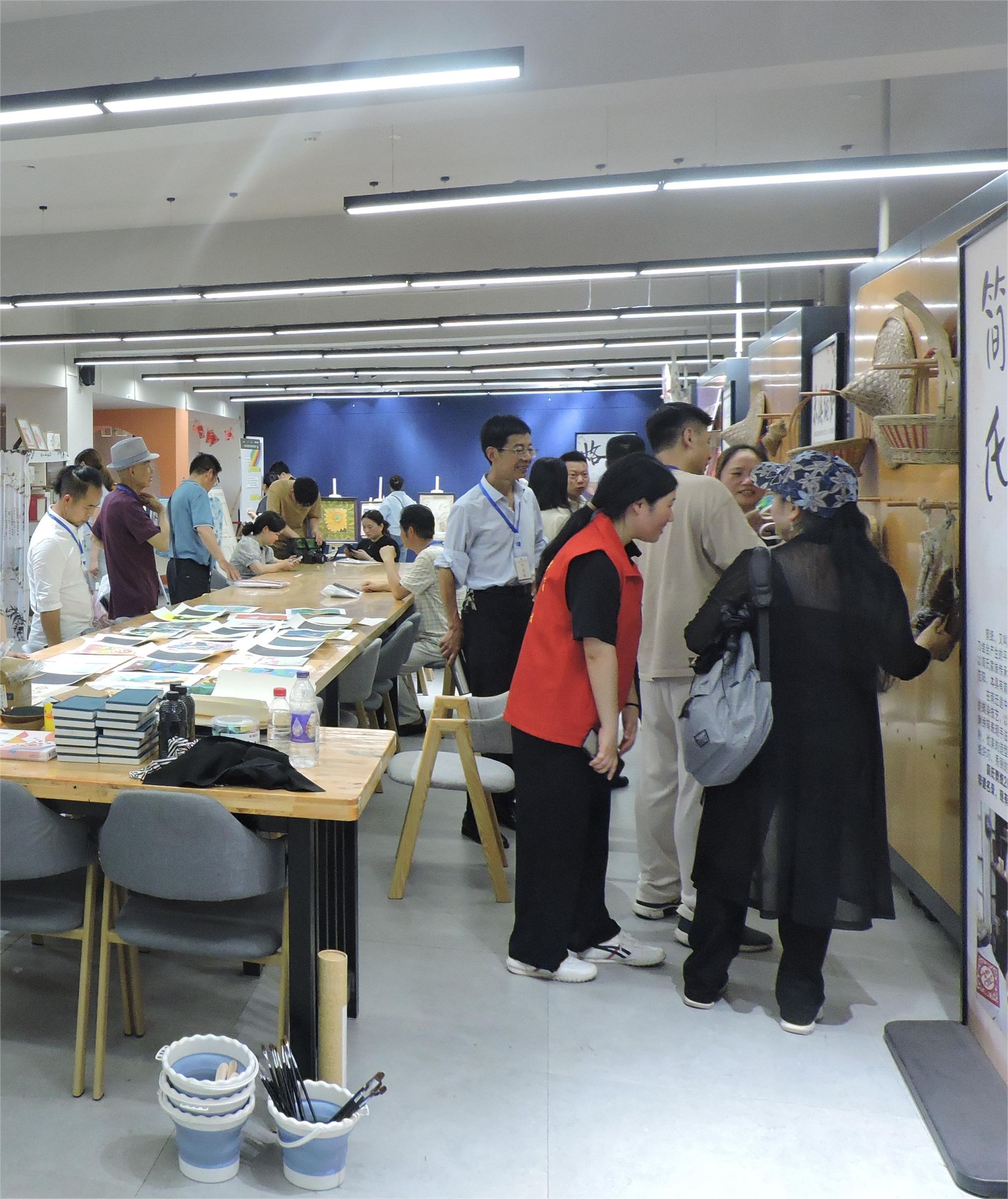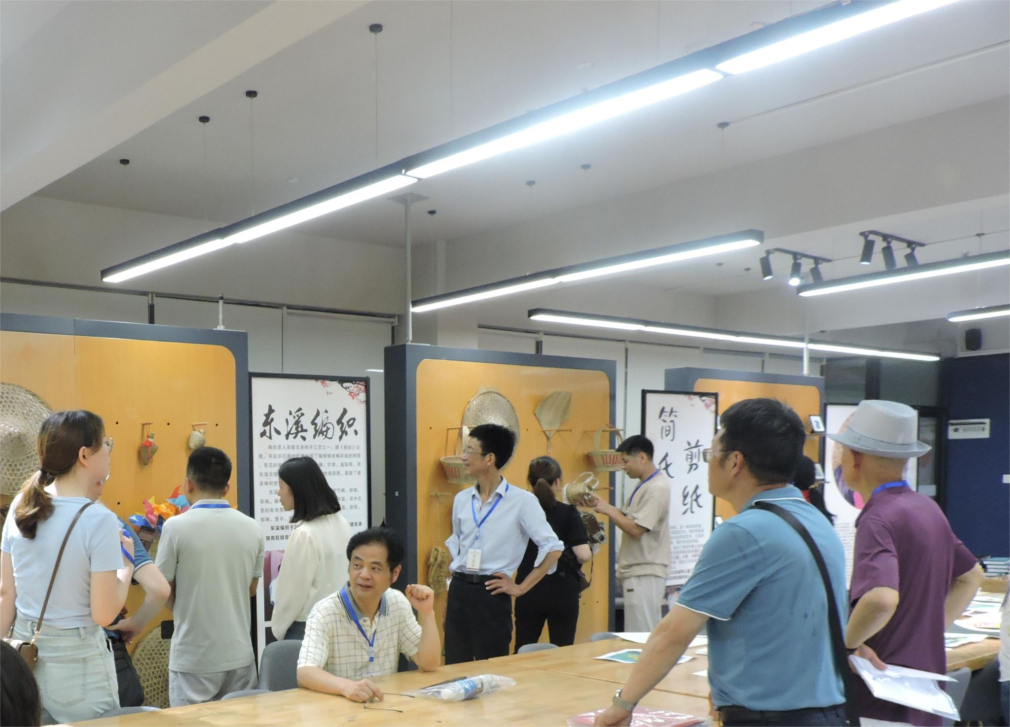 在此次培训期间,我院带领传承人参观学校的非遗临时展厅—巴渝文化工作室,并观赏了我院开展的版画课程的学生作品,各传承人对其赞不绝口,表示非遗行业人才辈出。学生也与非遗传承人面对面沟通,交流创作心得,共同提升其非遗内容主题创意生产、艺术表现形式。