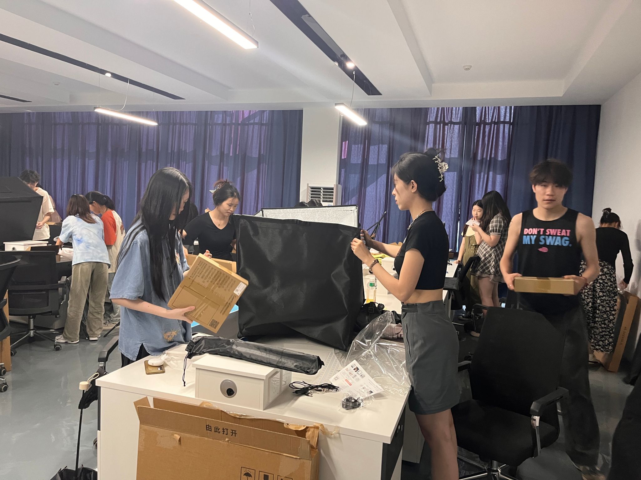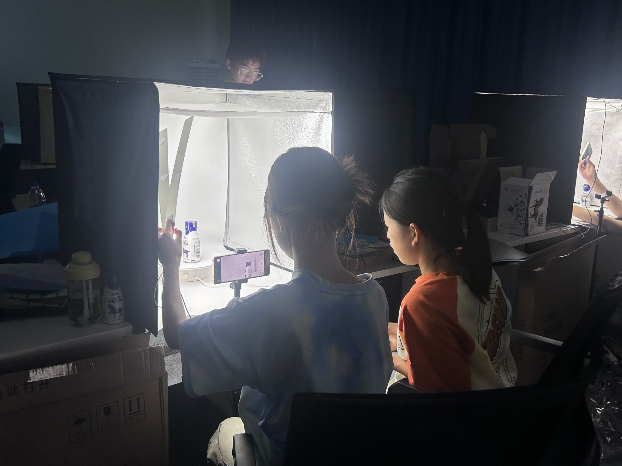 除了理论讲解,实践环节同样重要。学生们在伍老师的指导下,动手组装静物箱,这是拍摄高质量短视频的基础设备。通过亲手操作,学生们对拍摄设备的构造和使用方法有了更深入的了解。在完成静物箱的组装后,大家的积极性高涨,纷纷投入到饮品的布光、置景和拍摄实践中,将所学知识转化为实际操作技能。在理论讲解的基础上,课程还设置了实践环节。整个过程中,大家的积极性都非常高,纷纷表示收获颇丰。