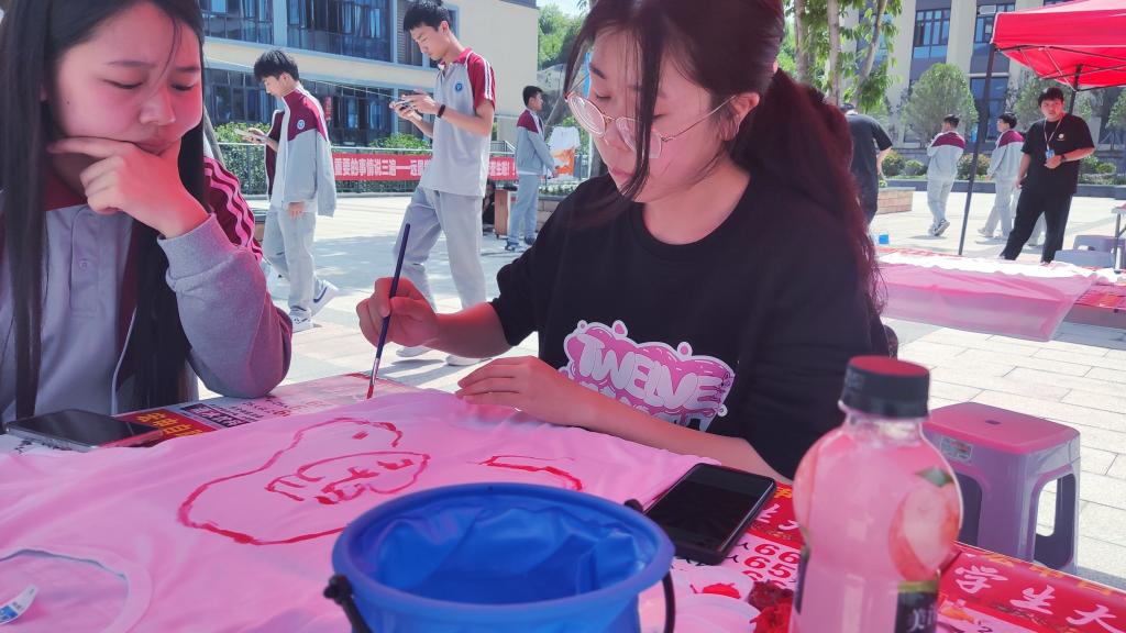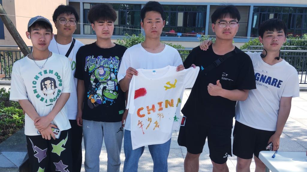 每一位选手深知此次主题的重要性,偏题是一大忌,“红心向党”这四个字不觉让人回忆起以前的点点滴滴,这一笔描绘的正是以往的遗憾,下一笔便是憧憬未来的希冀。我们每一位都是自己人生的规划师,执笔之手,无一不透漏着自己内心的坚毅。同学们主动搜索寻找“红心向党”的素材,描绘在文化衫上,拿着画笔,认真搭配着不同的颜色,充分发挥想象力和创造力,用自己的双手绘出对党的美好祝福。