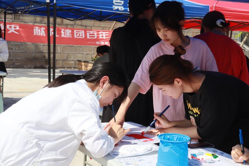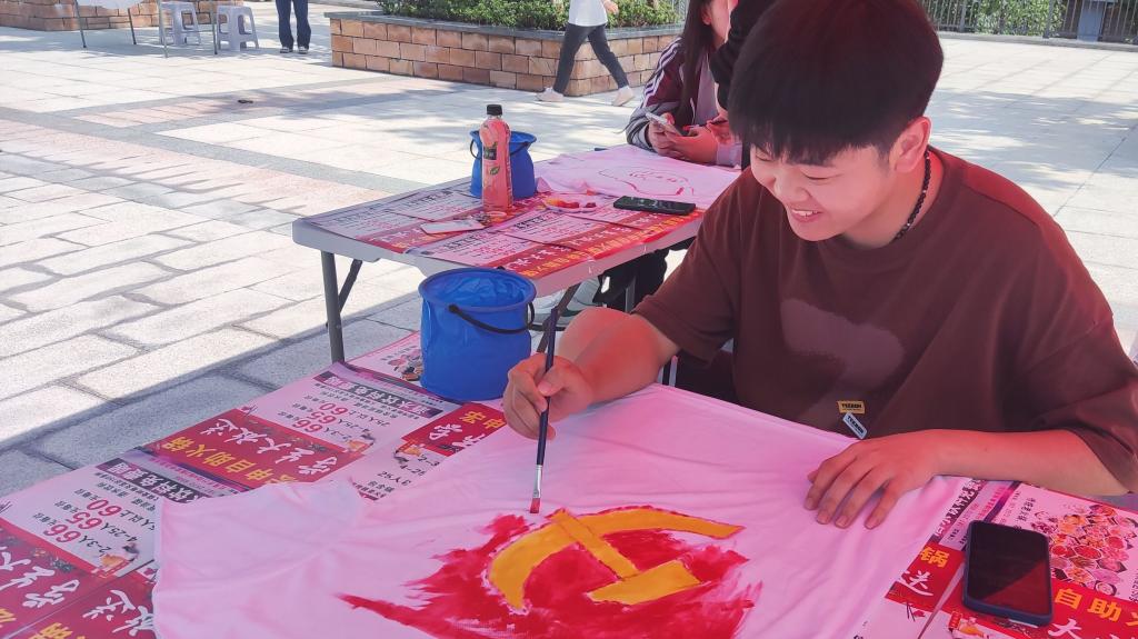 创意改变生活,科技引领未来,以培养同学们的科技意识、创意精神和实践能力为核心,我校举办的创意科技文化节如约而至。作为此次创意科技文化节的承办方,通信、信安学院结合学院特色,以中国共青团成立一百周年为契机,为更好地传承红色基因,讴歌新时代、记录新气象, 2022年5月20日15时,通信、信安学院组织部、权益拓展部在图书馆广场开展以“筑梦青春,红心向党”为主题的手绘文化衫活动。