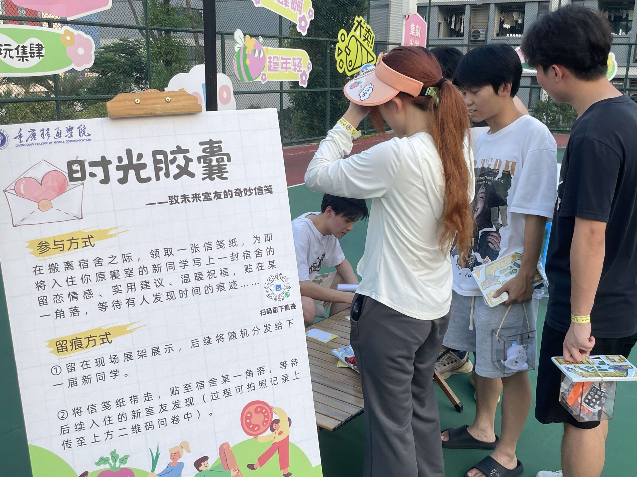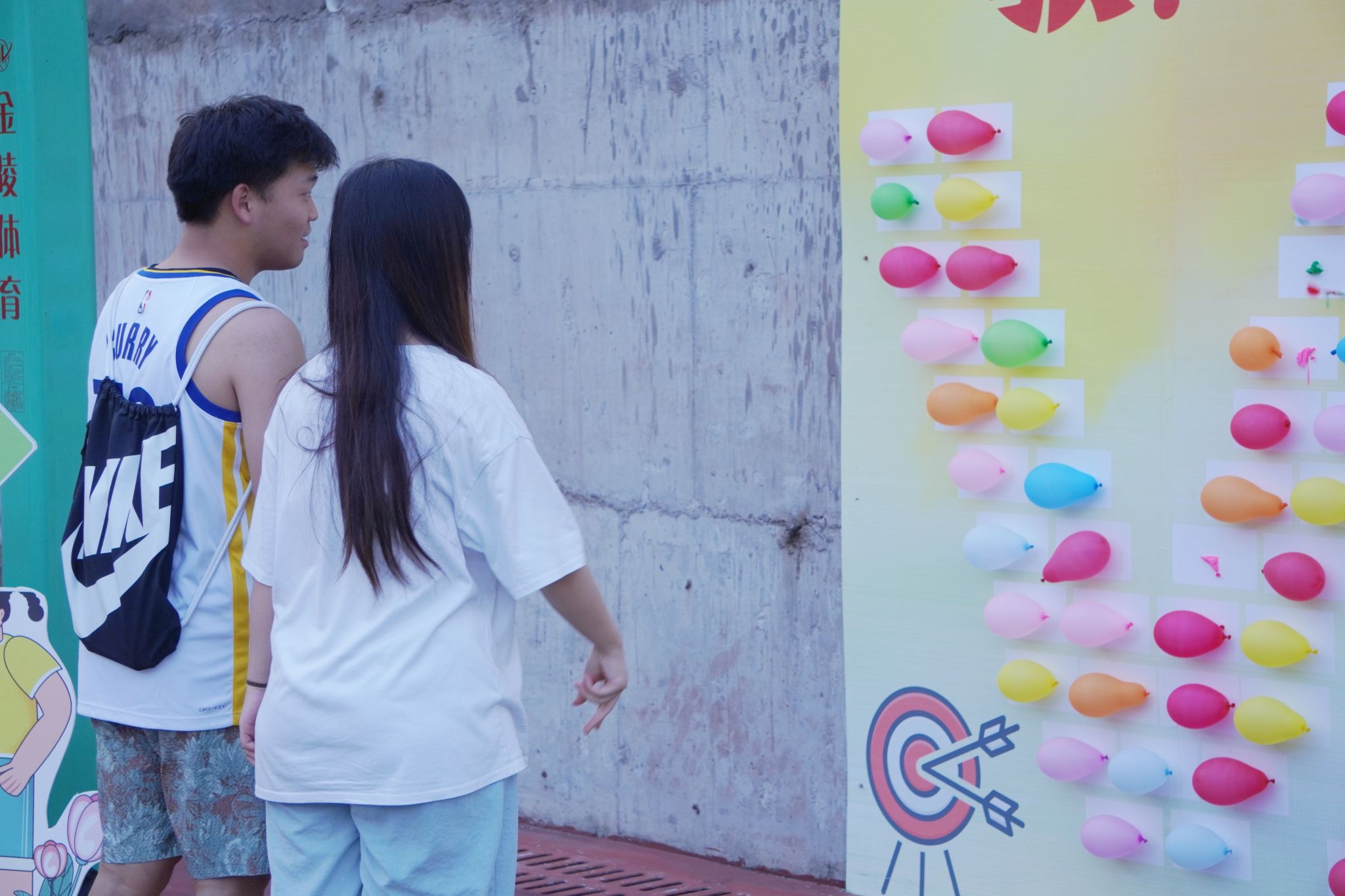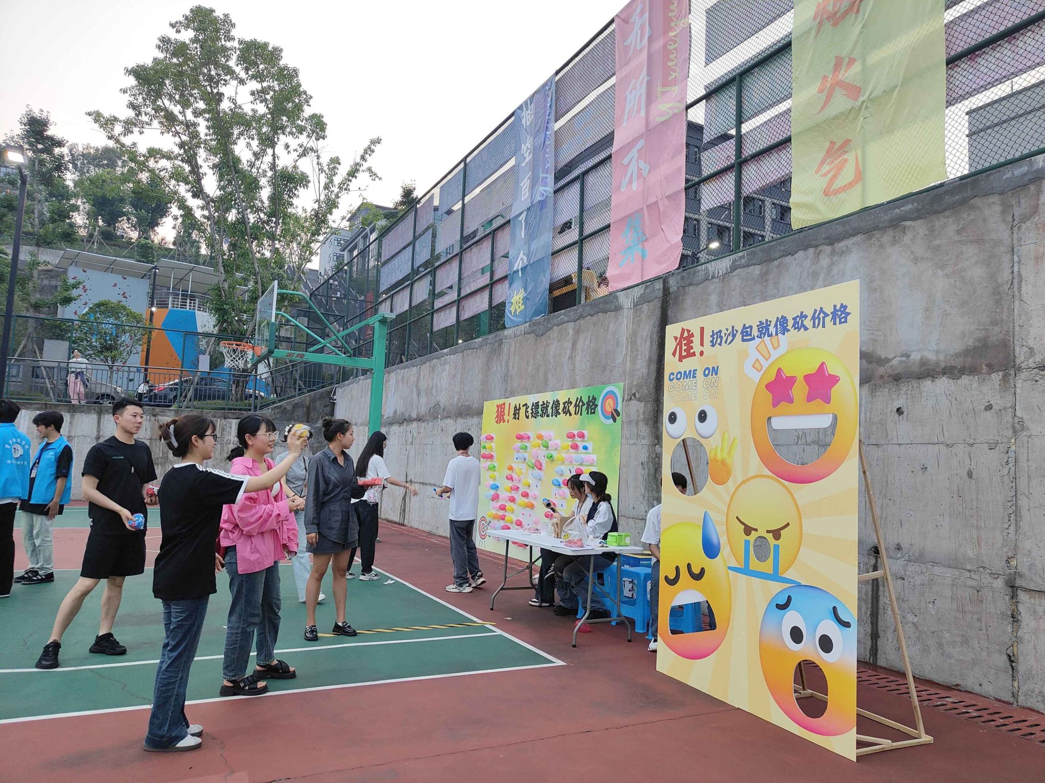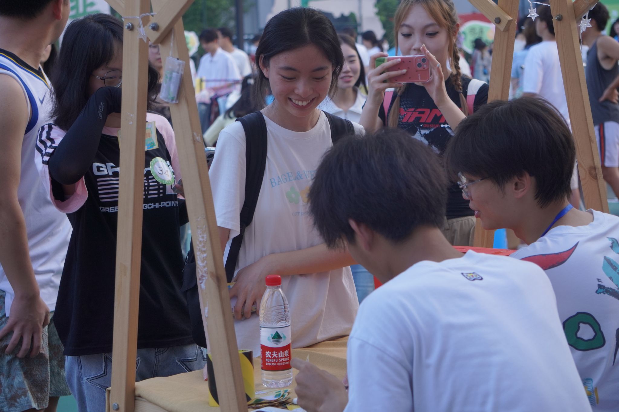 现场设置了时光胶囊、爱心义卖、淘趣坊、我为同学做实事的特色区域。来到时光胶囊现场,移通er领取信笺写下祝福,并可获得晴天娃娃的制作,在爱心义卖区,人潮涌动。一元义卖的石膏娃娃,精美的手工艺品、首饰应接不暇。除此之外,一元自助的冰粉区域格外热闹,晶莹剔透的冰粉配上各种调料吸引着众多目光,摊主熟练地调配着,移通er开心地品尝着这份美味。除了商品的义卖,现场还有集市的互动区域,移通er踊跃参与飞镖扎气球,扔沙包进洞,蒙眼踏步30s的互动板块,参与两种不同的抽奖方式让同学们“淘”出所爱,玩出所想。调研问卷的填写、“解忧杂货铺”上的便利贴,铺满了众多移通er的心声。通过收集到不同信息,我为同学做实事得到了更好的具象化。