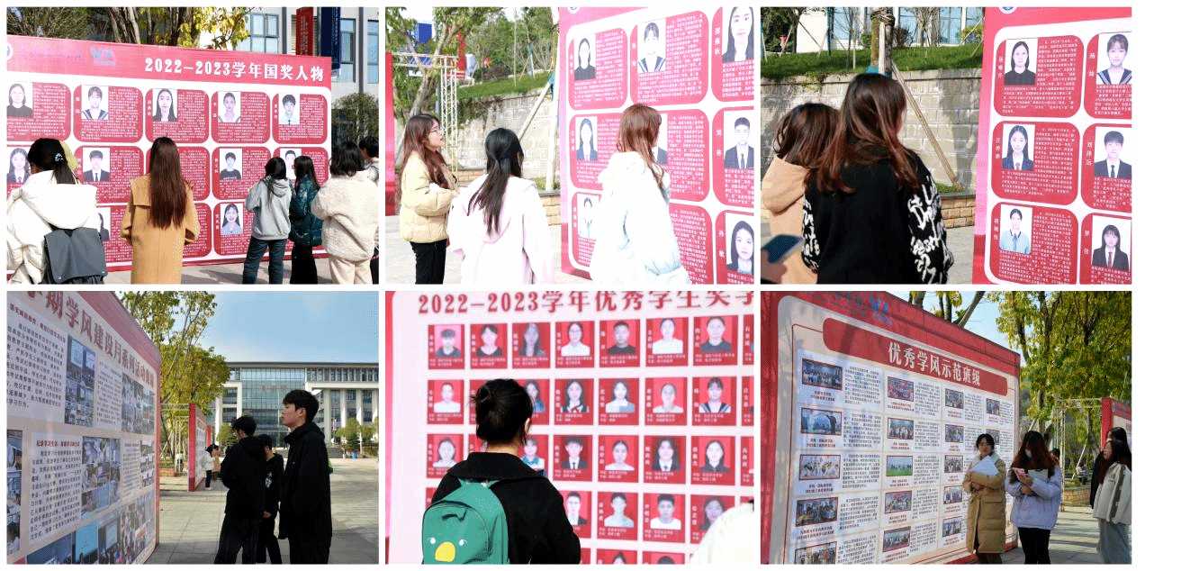 仪式共五大环节,包括学风朗诵、学风建设示范月活动方案宣读、2022-2023学校优秀学生一等奖学金获奖名单宣读、国奖代表学生发言、优良学风建设承诺签订等,现场通过8块主题喷绘充分展示学风建设先进典型,以国家奖学金获得学生、优秀学风示范班级、优秀学风示范寝室等先进事迹和学校优秀学生奖学金获得者名单进行公示展览,吸引众多师生立足细看,借此引导移通学子树立正确学习观念,养成良好学习习惯,向学风建设引领者看齐,为学风建设示范月的开展营造了浓厚氛围。