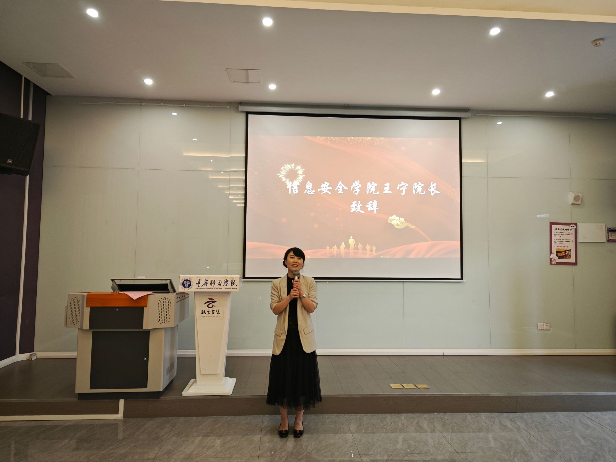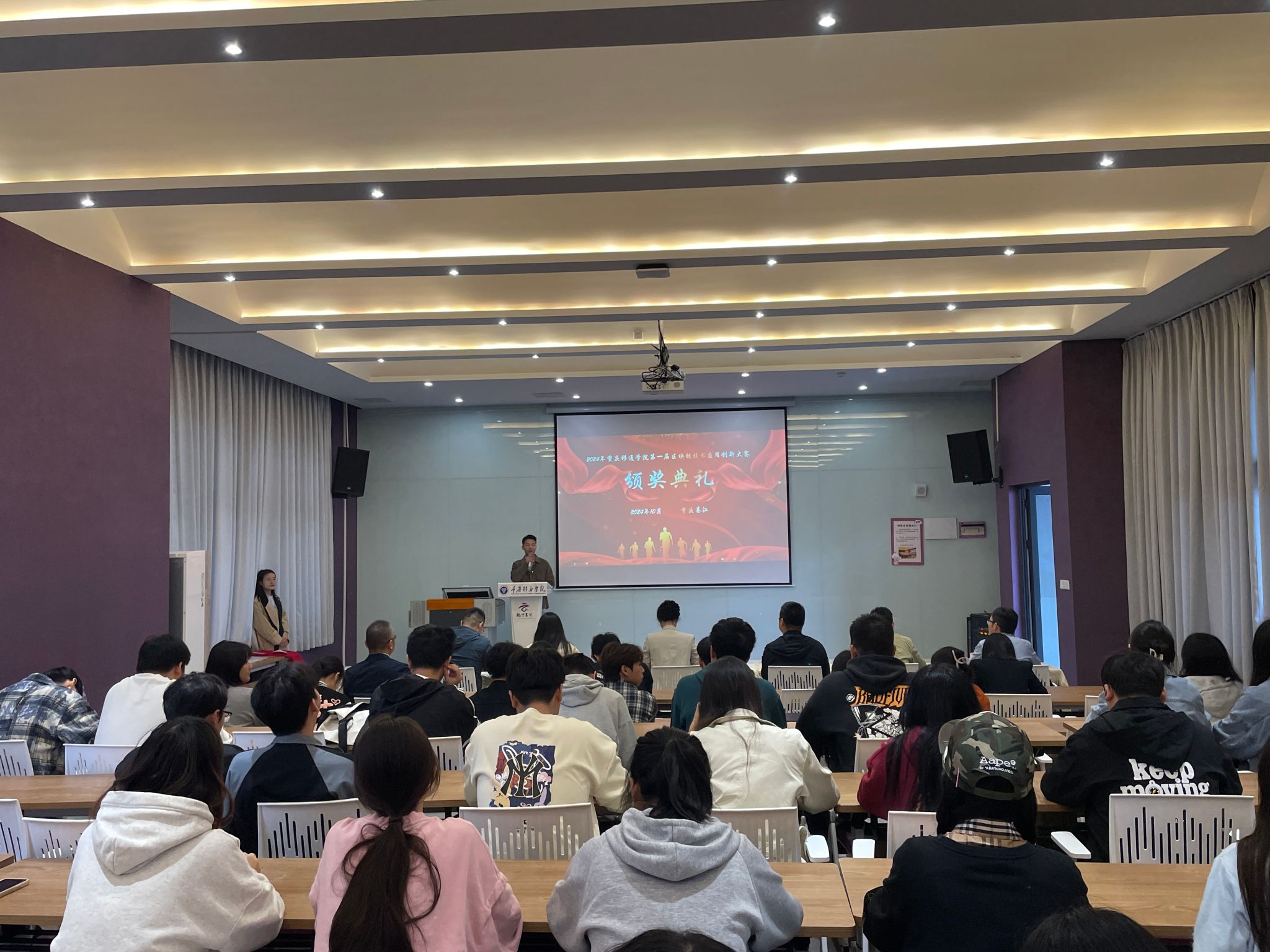 为提高我校大学生的区块链技术以及金融创新应用能力,进一步落实学校培养应用型人才的目标要求,促进我校学生的学习交流,丰富学生的第二课堂,培养学生的综合素质和实践创新能力,信息安全学院于2024年10月11日中午12时30分,在观云书院——冬至·多媒体活动室隆重举办了重庆移通学院第一届区块链技术应用创新大赛颁奖典礼。此次颁奖典礼不仅是对在比赛中展现出卓越项目开发能力和创新思维的学生们进行表彰,更是对辛勤付出的优秀指导教师的肯定。重庆移通学院信息安全学院院长王宁、代理教学副院长周小艳、网络工程教研室主任黄海军、信息基础教研室主任杨宏志以及数字经济与信息管理学院信息管理教研室主任文豪、骨干教师王红堂等嘉宾莅临现场,与参赛学生、优秀指导教师代表以及各学院的师生代表共同见证了这一荣耀时刻。