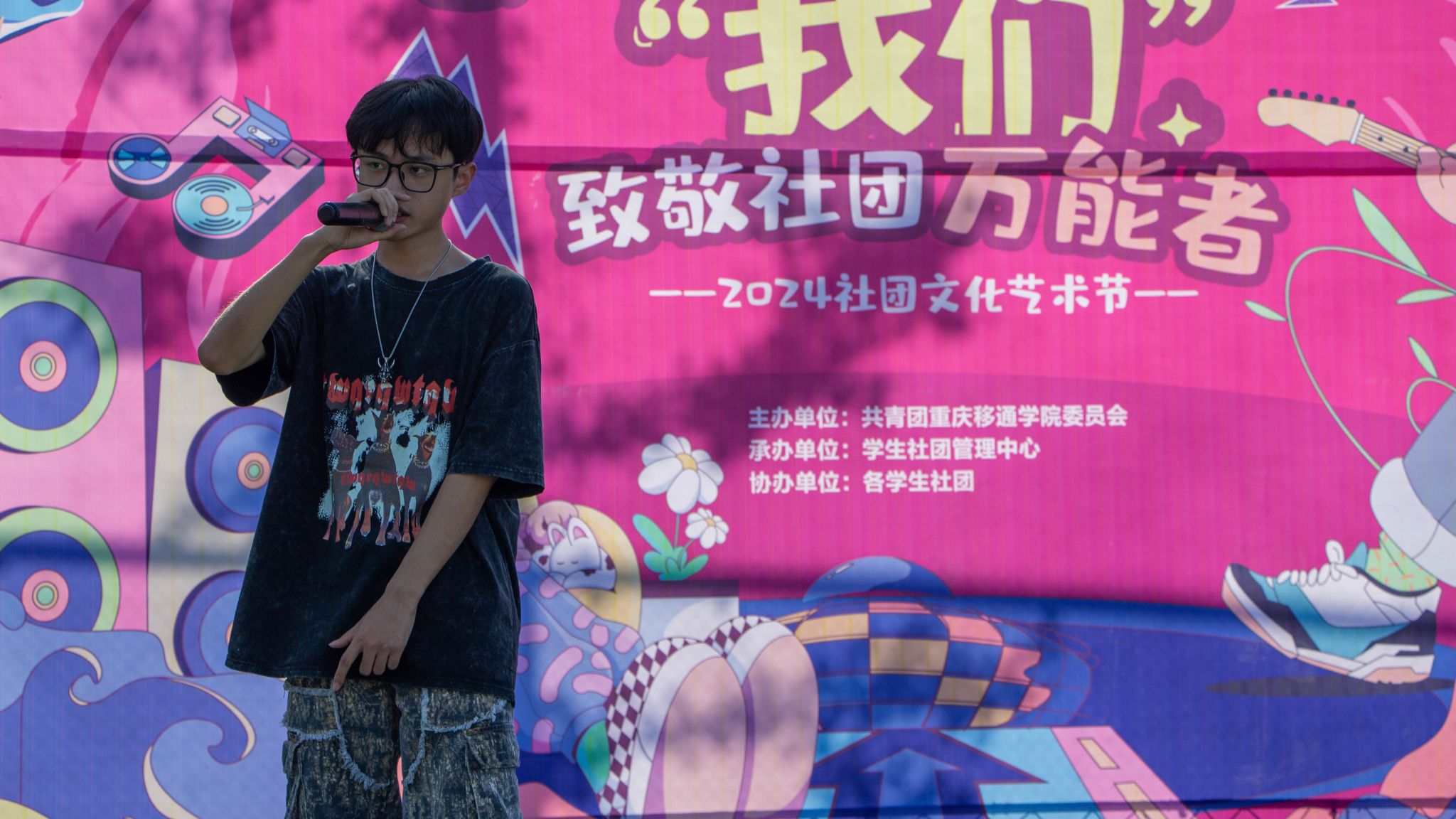 T·sparkle舞社是表演的万能者以一场活力四溢的开场热舞,为社团艺术节揭开序幕。“我们”的表演充满激情与活力,瞬间点燃了全场的气氛,引领着同学们共同踏入了这场盛大的艺术盛宴。每一个动作都充满力量,每一个节奏都紧扣心弦,“我们”的舞蹈仿佛有魔力,让所有人都为之倾倒,陶醉在此刻。华韵汉服协会是传承的万能者,在花车上万艳争奇,而花车下的少年们带着对传统文化的热忱与传承的责任感,共同穿越千年的历史画卷,将古典的韵味与现代的风采完美结合,呈现出一幅幅动人的画面。体育舞蹈协会是柔韧的万能者,将柔美与力量完美融合,灵动与坚韧交织在一起。通过拉丁舞等舞蹈形式,“我们”带领着同学们在舞动中感受青春的活力,绘制出一幅幅充满色彩的青春画卷。社团可以静谧如斯,也可以热烈张扬!綦怪YTR说唱社是节奏的万能者,随时燃炸全场,用热爱打败夏日燥热。