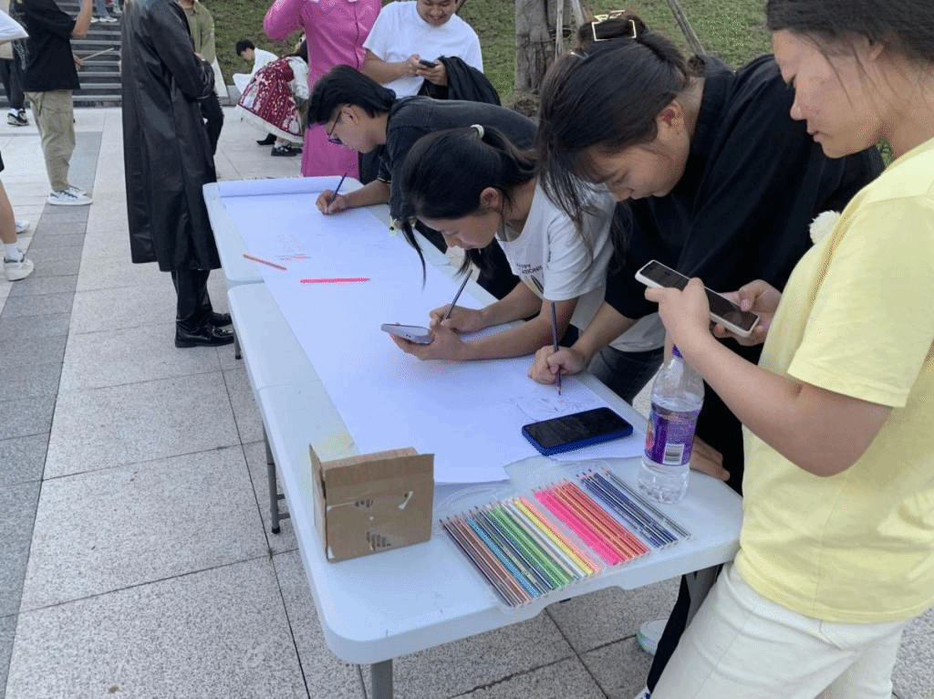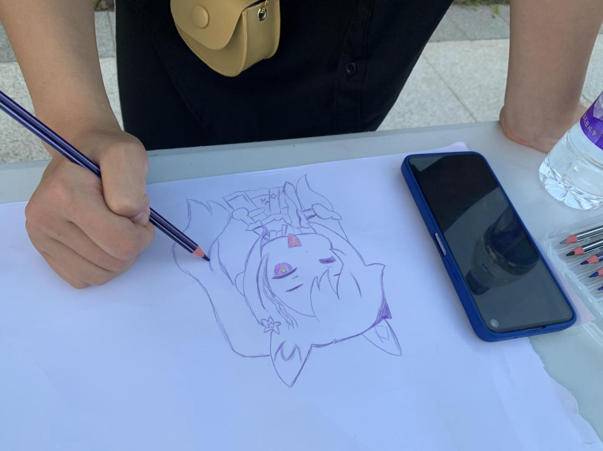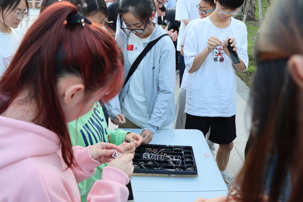 表演结束,两个社团精心设置的互动体验项目也吸引到了不少同学的参与,套圈、九连环、彩铅手绘……同学们玩得不亦乐乎。无论套圈游戏的奖品是否丰厚,每一个参与的同学都更在乎该如何将套圈套在那个会前后摇晃的不倒翁上,绘画长卷更不必说,不论是会画画的大佬还是感兴趣萌新都愿意上手画上一幅他们心中的完美佳作,这也使得本次活动的体验性大大提升。