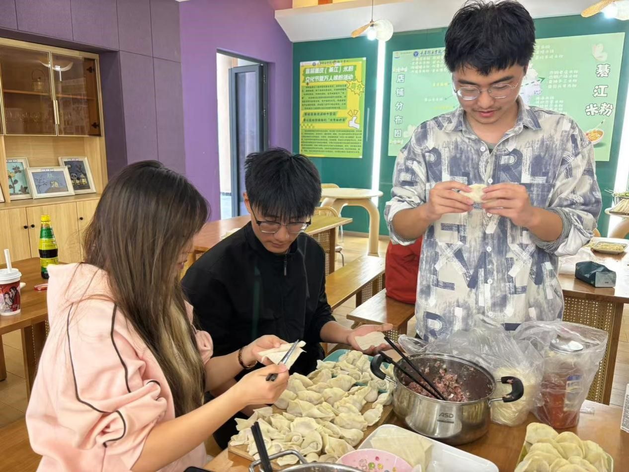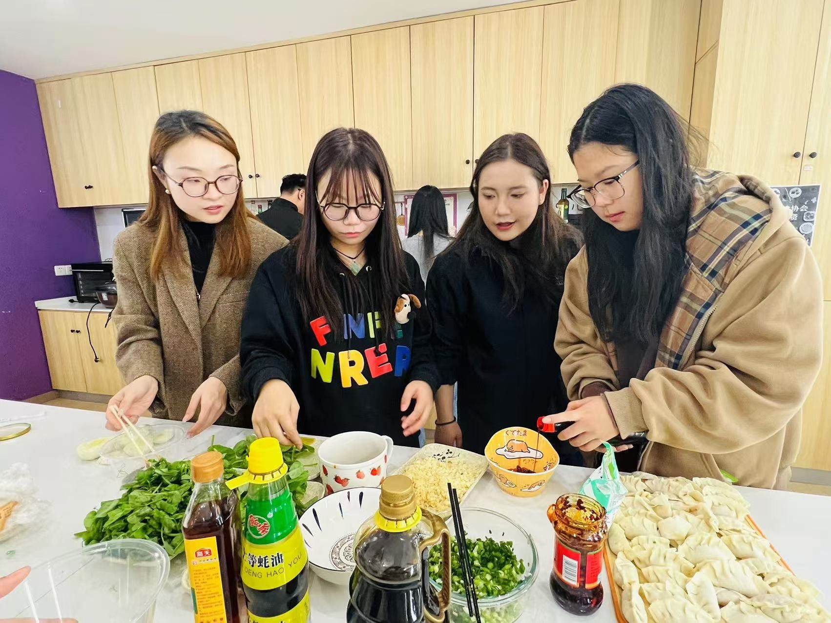 为了丰富学生的校园生活,让同学们感受到冬天的温暖,营造和谐温馨的班级集体氛围,2024年11月8日 星期五,廖婧、舒玉红、李旎三位老师带领戏剧影视学院2023级动画4班、5班,2023级供应链管理2班,2022级数字经济4班的同学们,在观云书院共享厨房开展了“情暖立冬,饺香飘溢”的包饺子异科活动。
