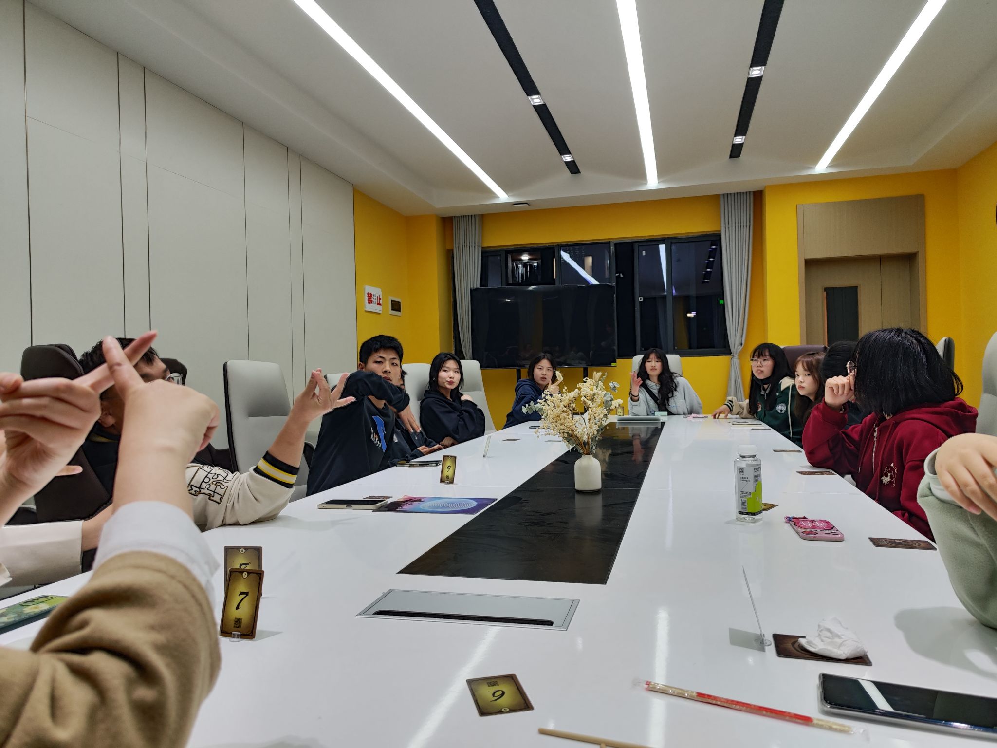 2023年4月6日晚上7点在瀛溪书院的一二三会议室,数字经济与信息管理学院联合通信与信息工程学院举办联谊活动,吴卉玲老师、刘洋老师、程似锦老师、王中银老师和供应链管理1、2班、电子信息6班的同学开展了一场精彩绝伦的狼人杀桌游活动。并邀请了大数据与计算机科学学院陈雪媛、耿钰然老师友情参加。