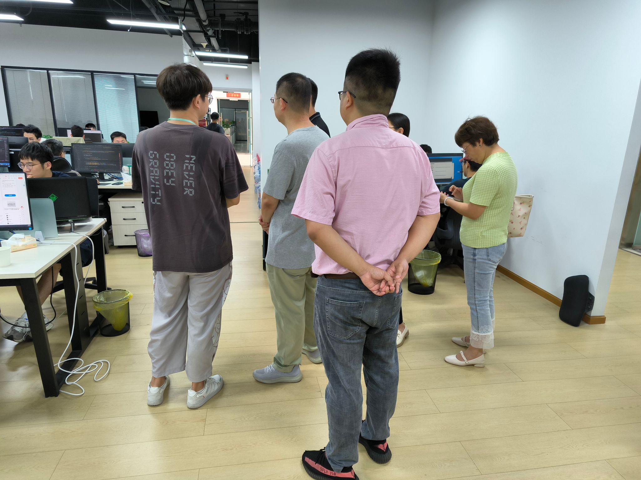 首先,在国信安总经理周璨的带领下对整个园区进行了参观。每一处细节都透露出企业的核心价值观和独特魅力。宽敞明亮的办公环境、先进完善的设施设备,以及员工们热情洋溢的工作状态,都让实地走访者深受感染。