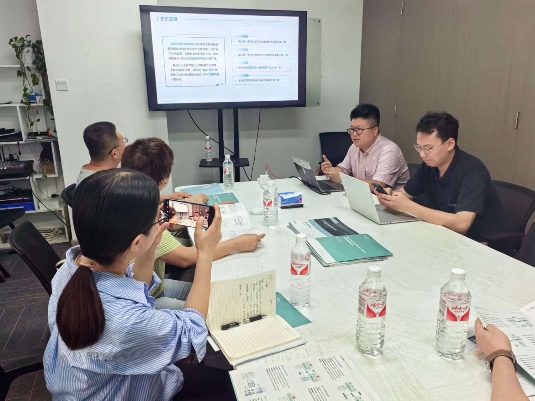 随后,我们分别与两家公司先后进行了座谈交流。成都云祺科技有限公司负责人黄总,介绍了公司的发展历程、核心业务、技术特点以及未来发展规划。接着,国信安总经周璨总从公司简介、合作模式、未来规划三个层面展开了详细陈述。随后,在交流讨论的基础上,一致认为通过“校企合作,就业育人”的方式,来拓宽学生对职业道德、职业规划、就业心理等方面的认知重具有要意义和价值。从长远来看,这有利于持续赋能“人岗匹配”与“生涯发展”的和谐统一。