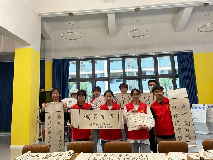 在咖啡厅,大数据与计算机科学学院青年志愿者协会联合青花墨字书画社团开展了诚信书法活动,以此来发扬校园诚信之风,谱写移通诚信之章。