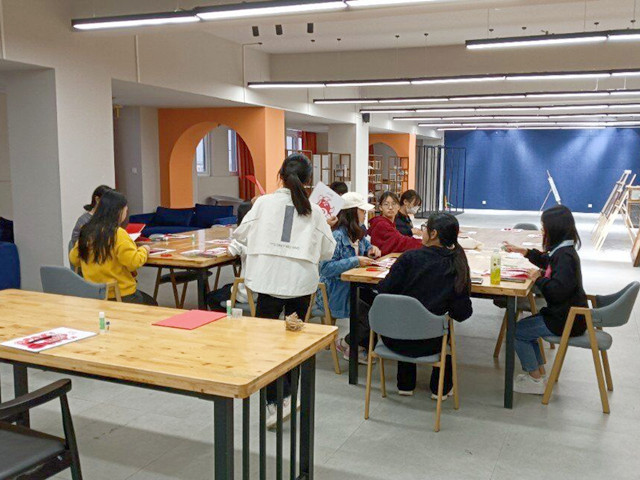 活动前,巴渝文化工作室成员们事先布置好了场地和剪纸活动用品,并在工作室负责人韩城飞同学的带领组织下,相聚晨钟文化展厅,一同体验剪纸手工活动。
