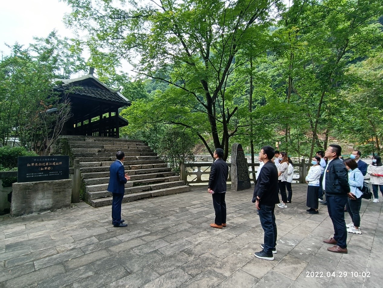 签约仪式前,全体人员参加“讲好红色故事、传承长征精神”党史学习教育参观红色教育基地活动。在红军桥参观学习,并在石壕烈士墓听红色故事,举行主题党日活动,观看中央红军长征转战綦江历史陈列。