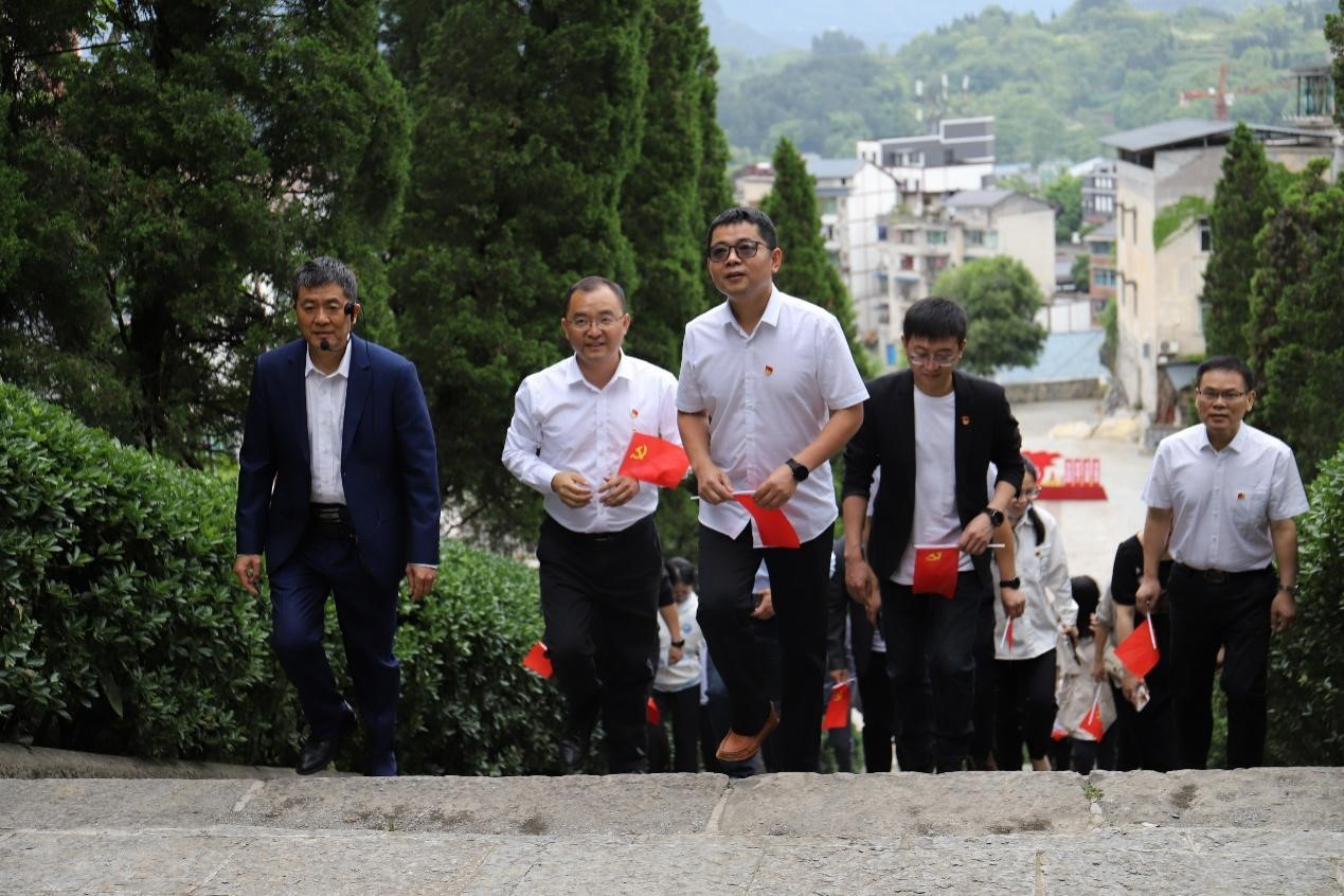 签约仪式后,区、镇领导与重庆移通学院的同志们一道,参观了红一军团司令部旧址,了解长征中的綦江故事。从邱石坝大田红军长征宿营遗址群出发,徒步到达田坝支部活动室,重走红军长征路,体验长征情。