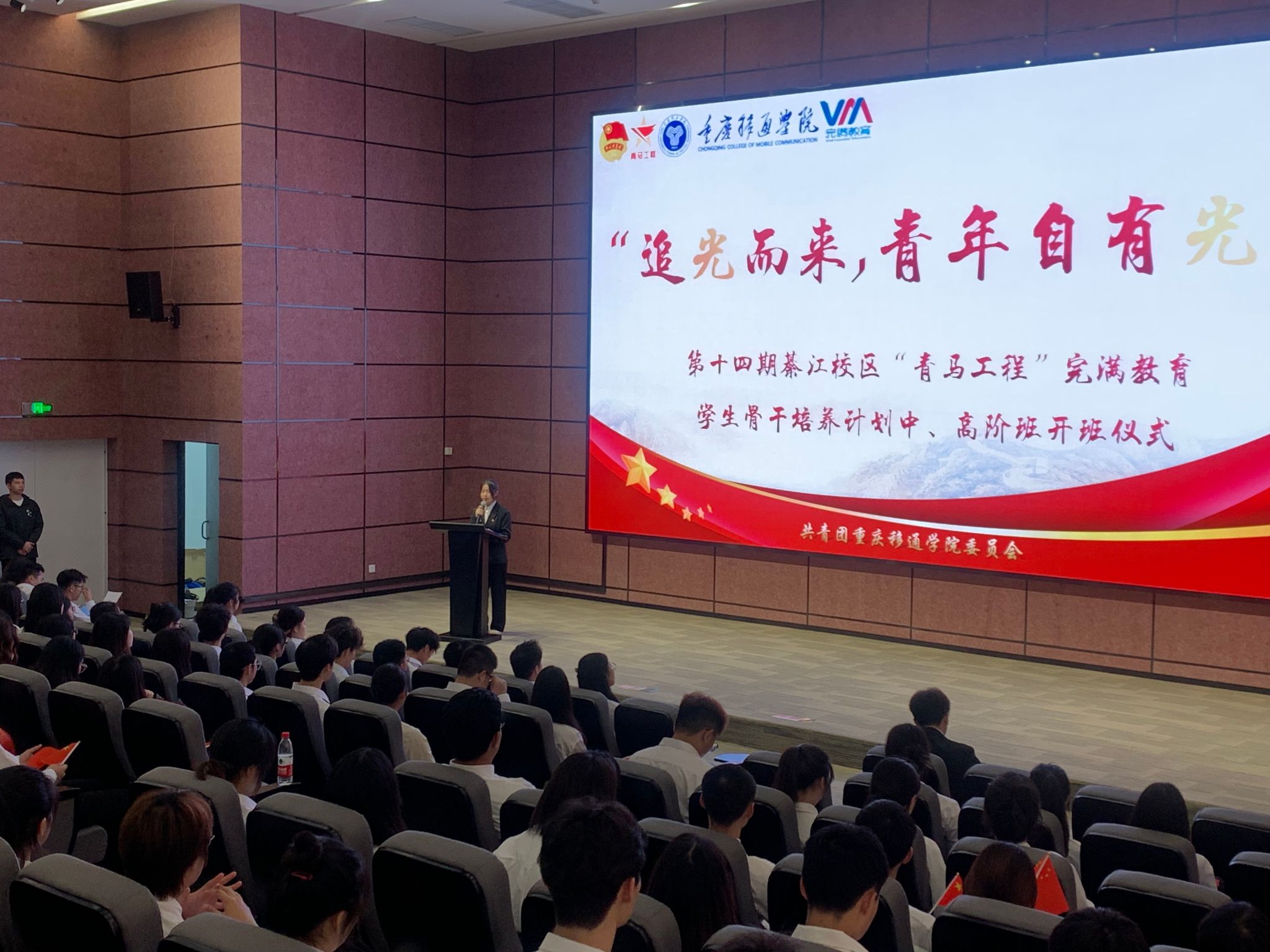 团歌响起,拉开了第十四期“青马工程”完满教育学生骨干中、高阶班开班仪式的帷幕。开班仪式上播放了第十三期“完骨班”风采回顾视频《追光而来》,视频以“淬炼”实践课程为主线,记录学员在培训中的点滴汗与泪,展现了往期“完骨班”学员意志力、坚韧力、领导力的成长。